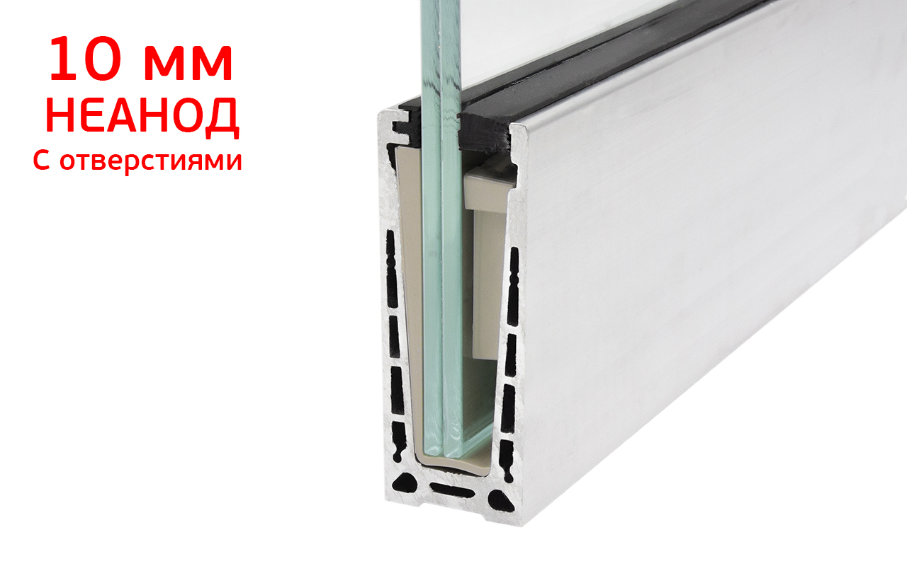 Комплект профиля зажимного для стекла 10 мм, с отверстиями, НЕАНОД, алюминий, k601-4-10