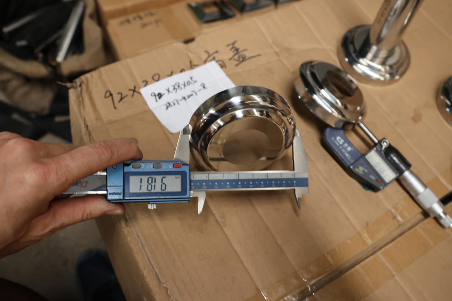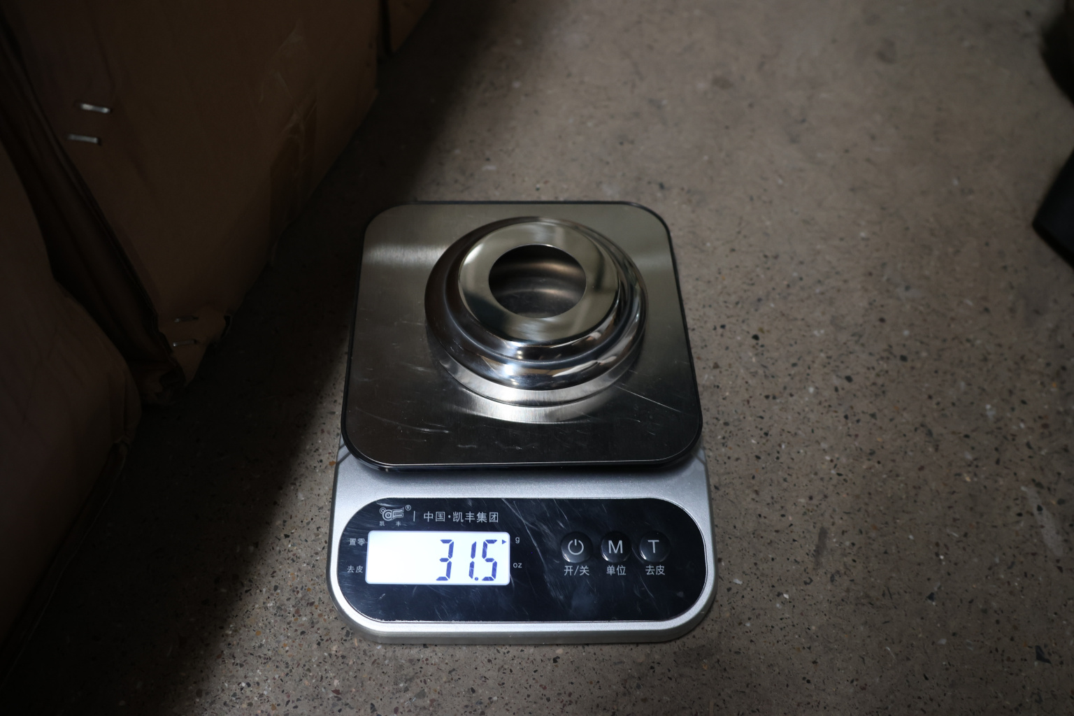 Низ стойки Ø38.1 мм, S=0,4 мм, внешний Ø90х12 мм, полированный 400#, марка стали- AISI 201
