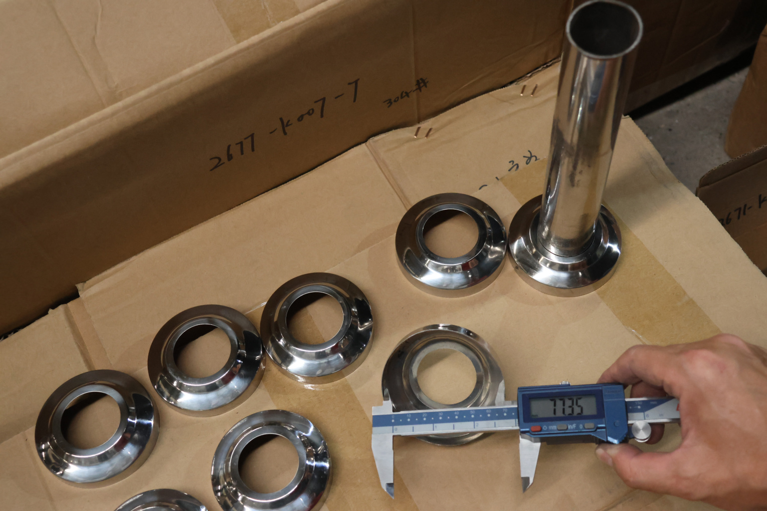 Низ стойки фигурный диаметром 38.1, Ø78х0.5 мм. Деталь полированная. Марка стали - AISI 304 #400