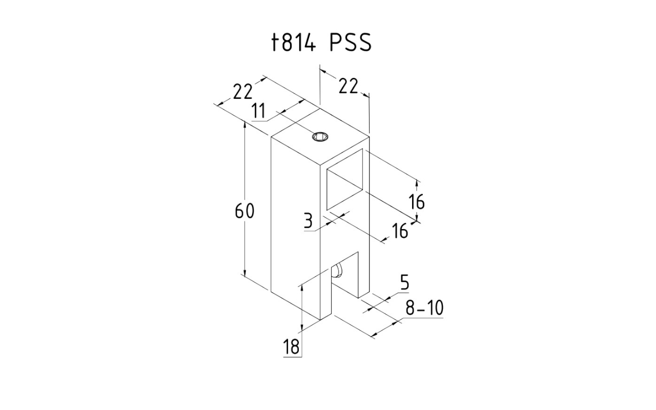 Соединитель труба-стекло, для трека 30х10 мм, AISI 304 полированный t461 PSS