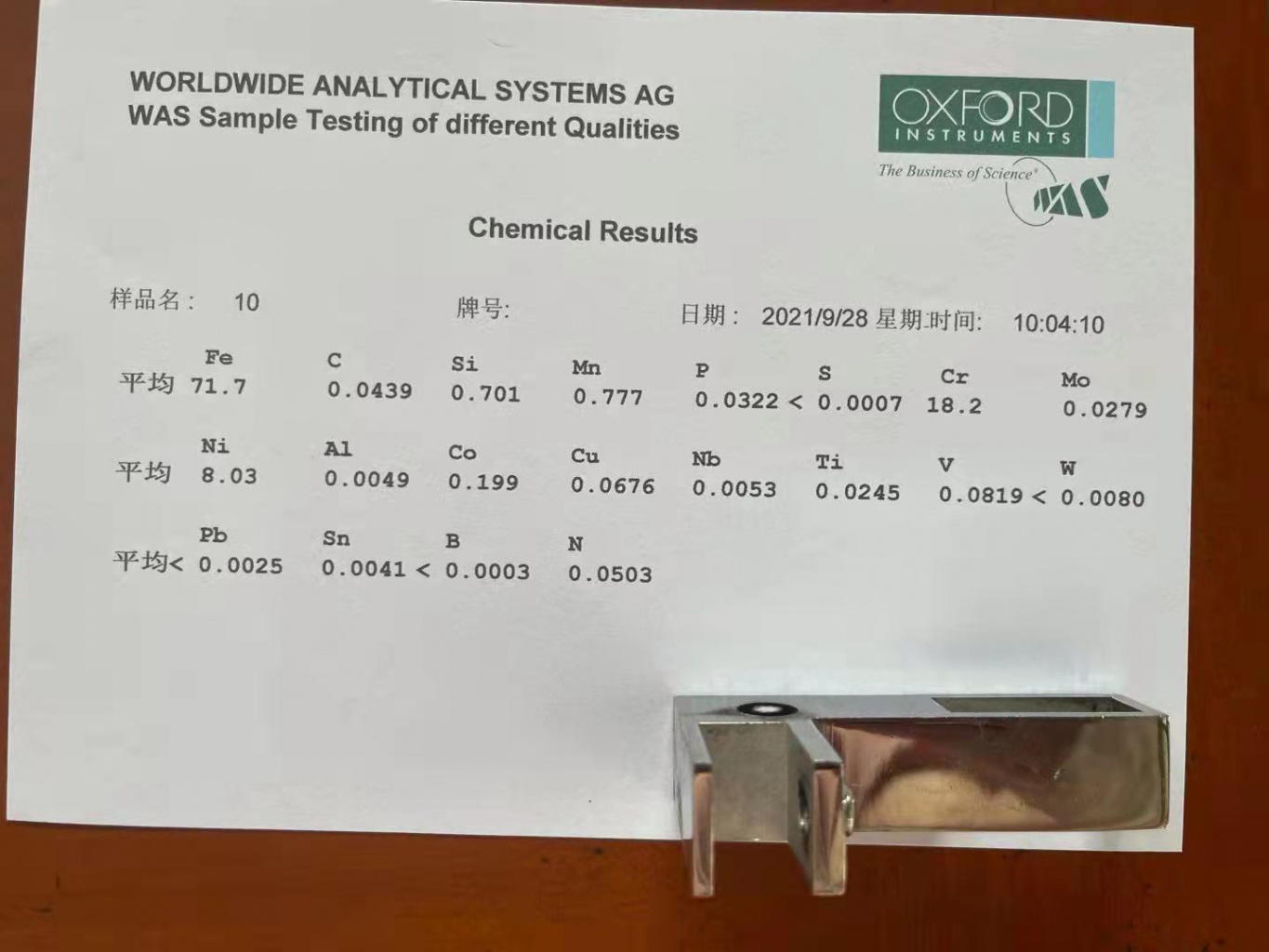 Коннектор труба-стекло, для трубы 30х10. Поверхность - полированная. Марка стали - AISI 304