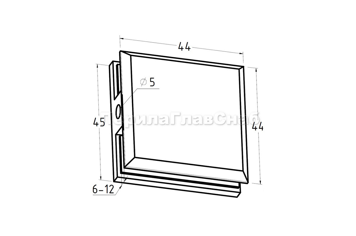 Коннектор для душевой кабины стена-стекло 45х45, цинк, вырез 67, цинк-хром полированный Фt730 PZn