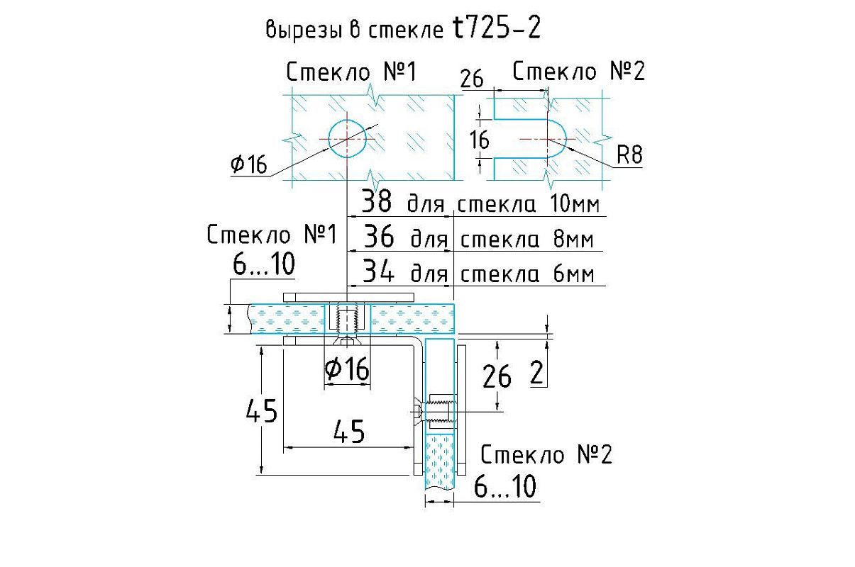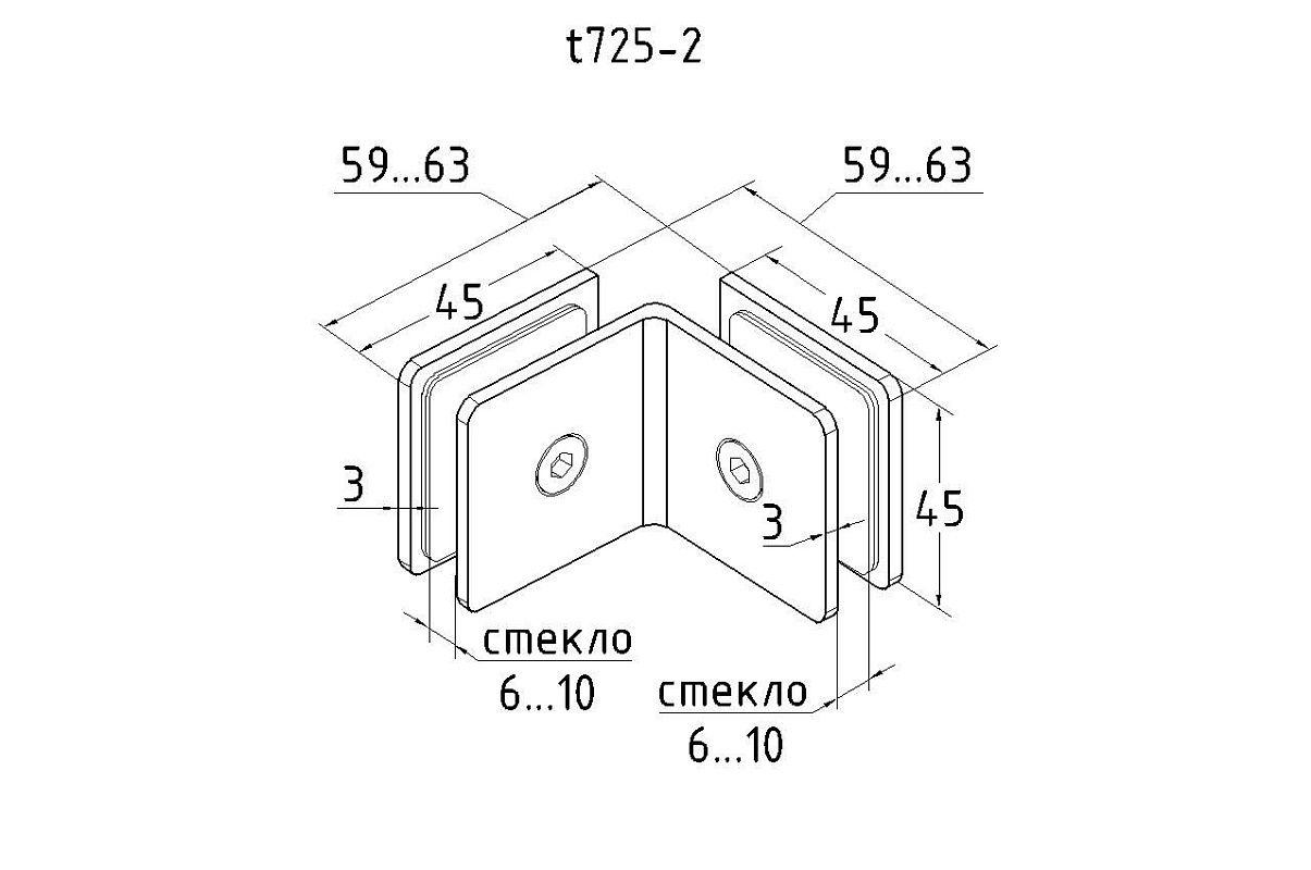 Коннектор для душевой кабины стекло-стекло 90° 45х45 мм полированный t725-2 PSS