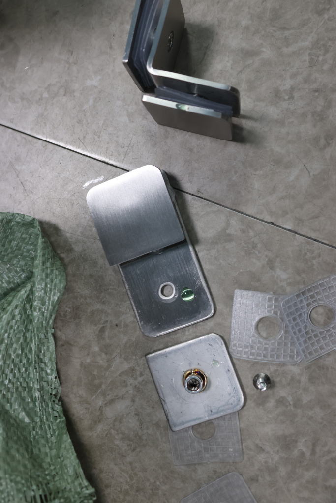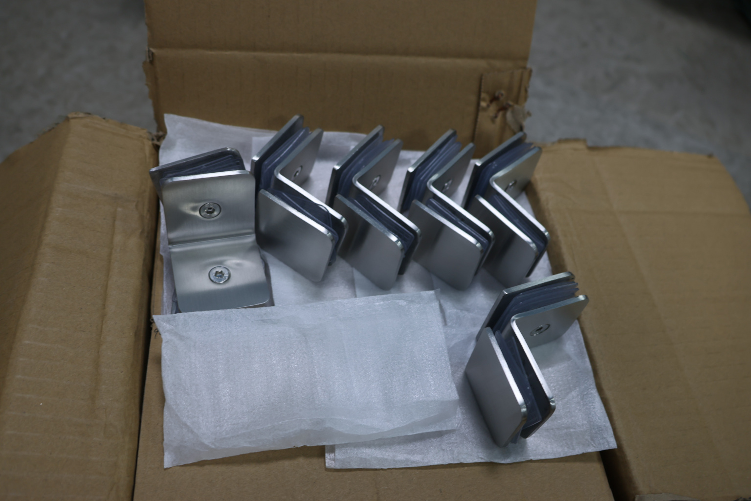 Коннектор для душевой кабины стекло-стекло 90° 45х45 мм, шлифованный. Марка стали - AISI 304