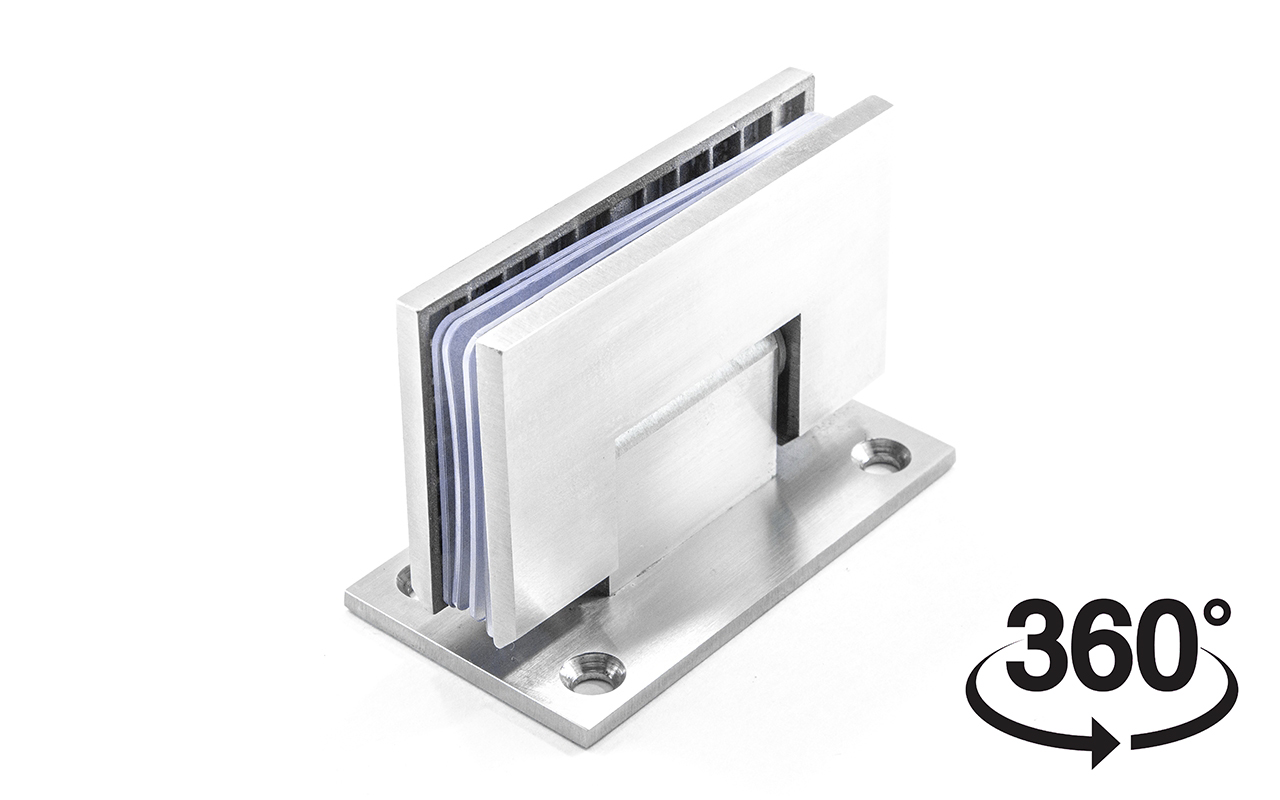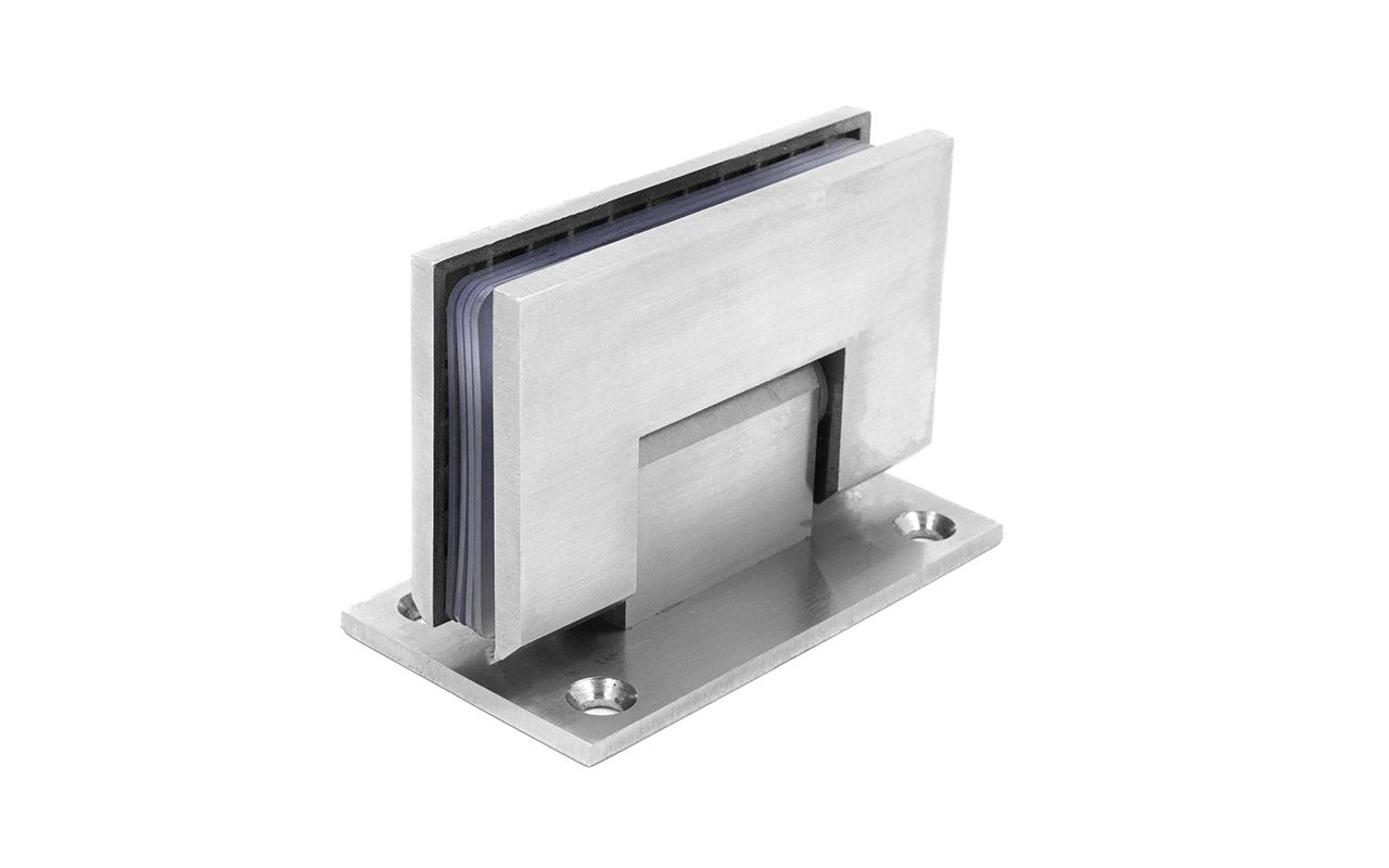 Петля со шлифованной поверхностью предназначена для стыковки между собой конструкционных элементов из стекла, толщина которых находится в диапазоне от 8 до 10 мм. Максимальный вес двери на 2 петли составляет 45 кг. В конструкции заложена система скрытого крепежа. Имеет функцию доводчика до закрытия от 25° градусов. Максимальный угол разведения стыковочных элементов в плане составляет 90° градусов.