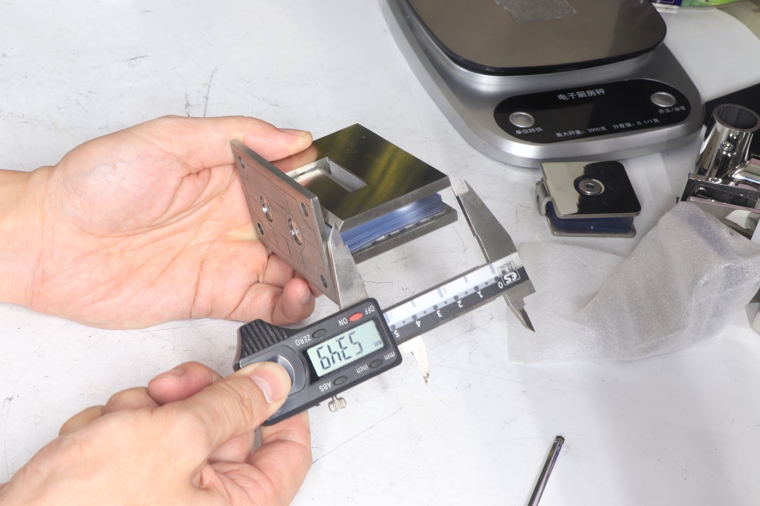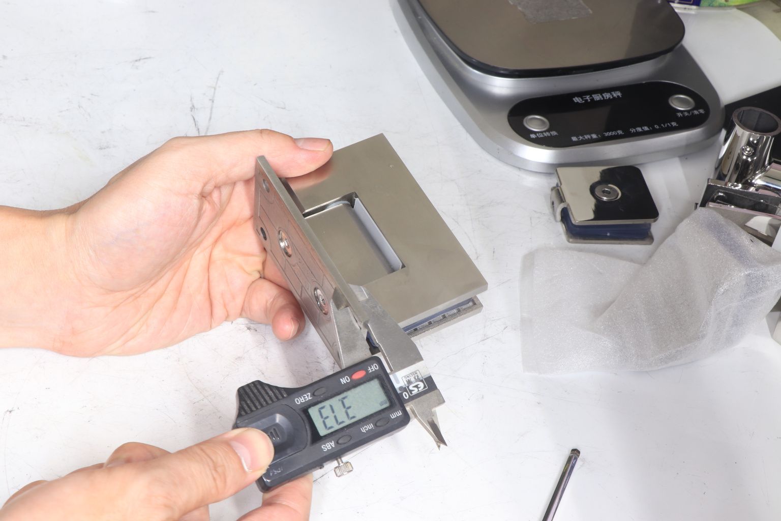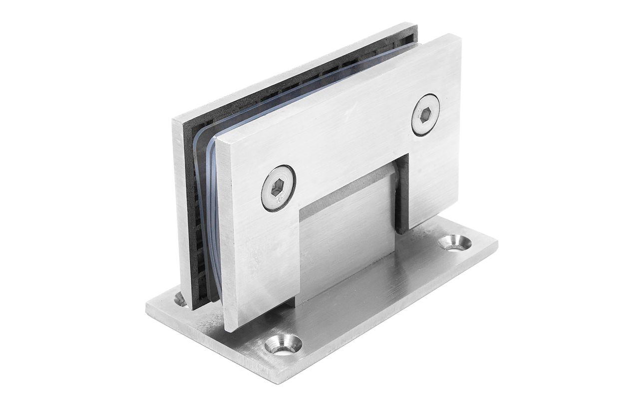 Петля для душевой кабины стена-стекло 90° 90х55 мм. Поверхность - шлифованная. Марка стали - AISI 304.