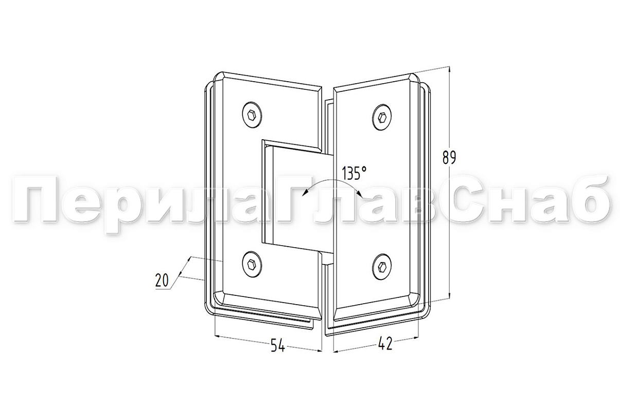 Петля для душевой кабины стекло-стекло 135° 90х55 мм цинк, полированная t302 PZn