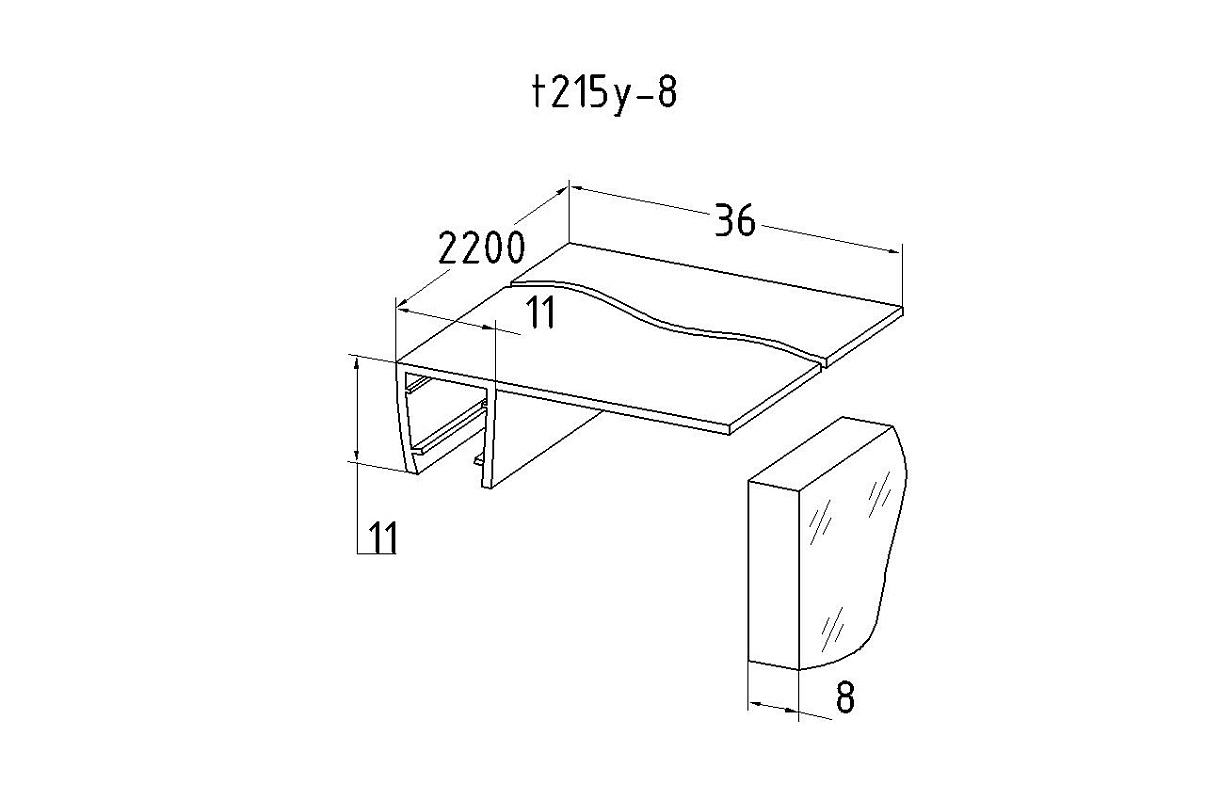 Длина 2200 мм. Монтируется по всему периметру стеклянного листа. Позволяет соединять стеклянные панели между собой