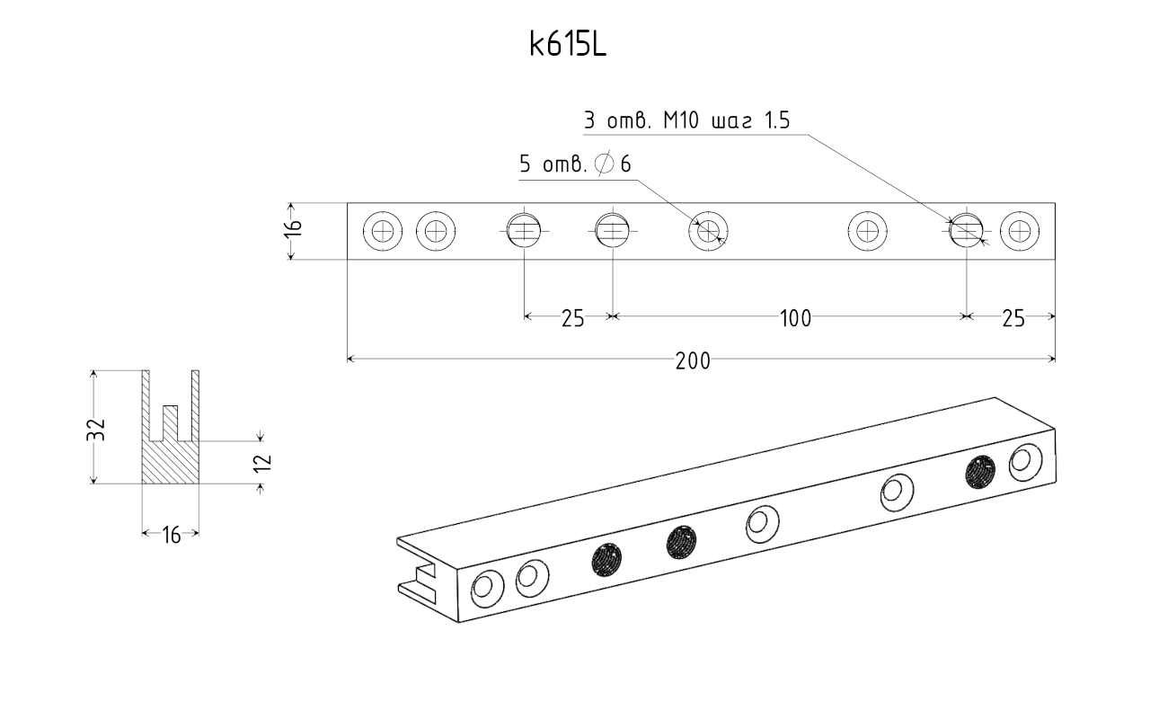 Кондуктор облегченный алюминиевый для монтажа козырька на алюминиевый фасад,200мм, под 5 саморезов k615L