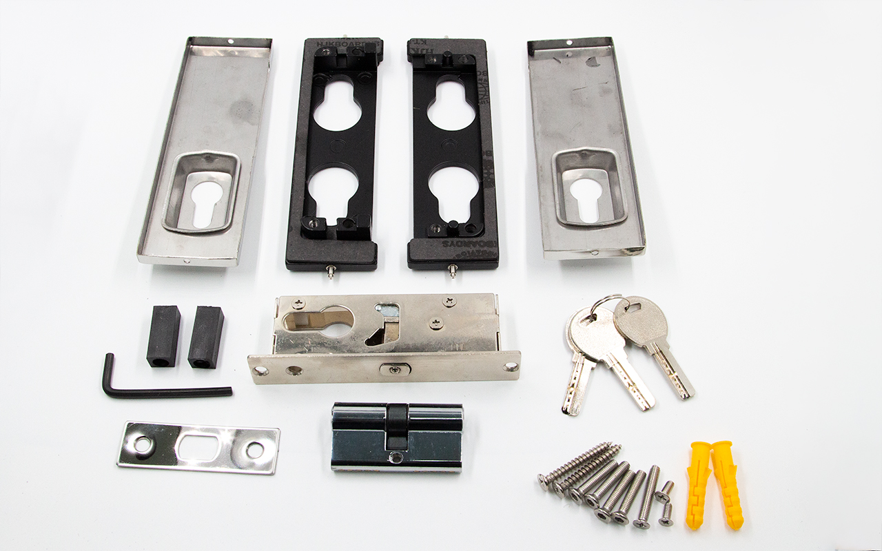 - Надежно запирает стеклянные двери. Проверено на практике: скорее не выдержит стеклянное полотно двери, чем ригельная часть замка.