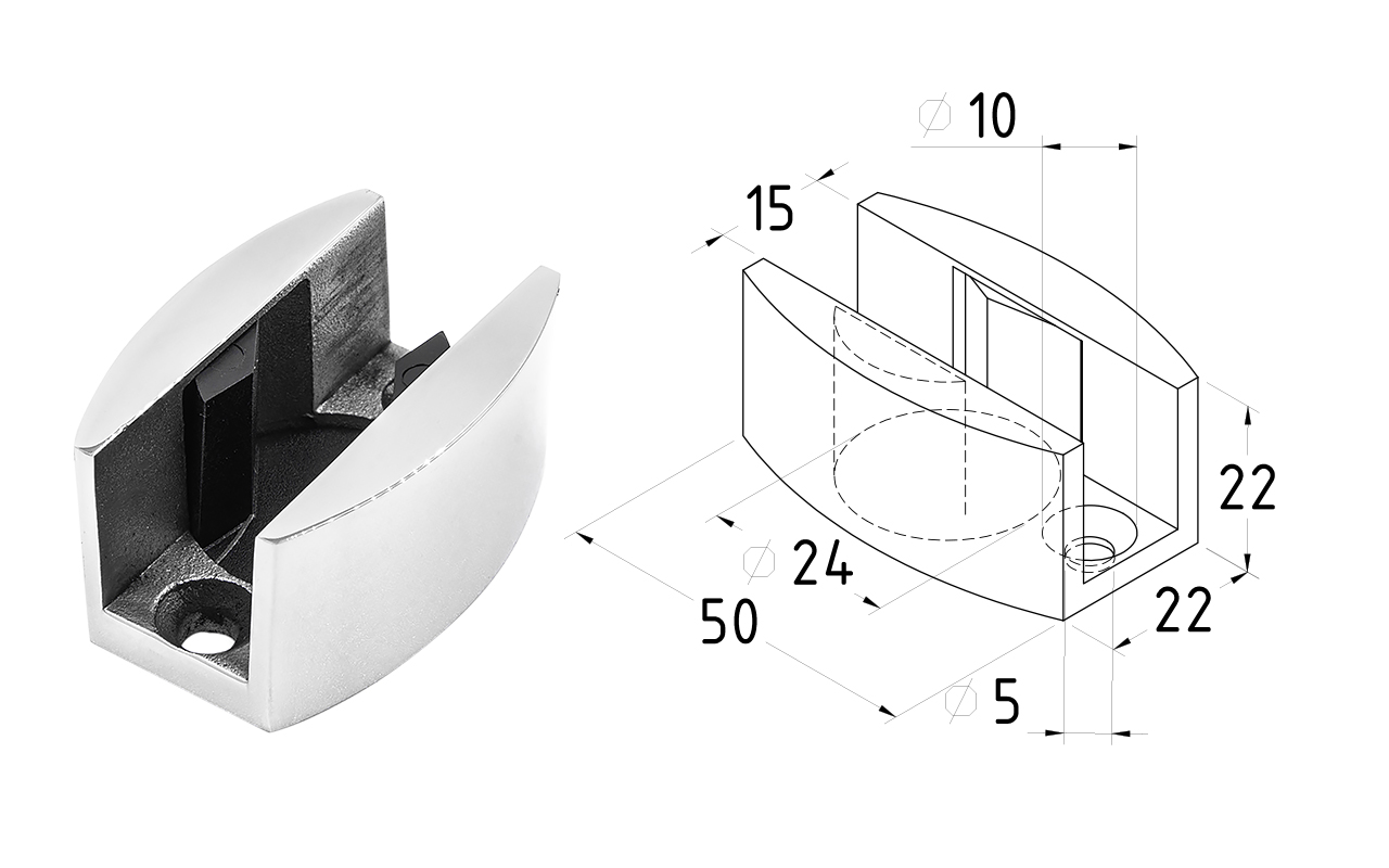 Коннектор стекло-стекло 53х53, полированный t122 PSS