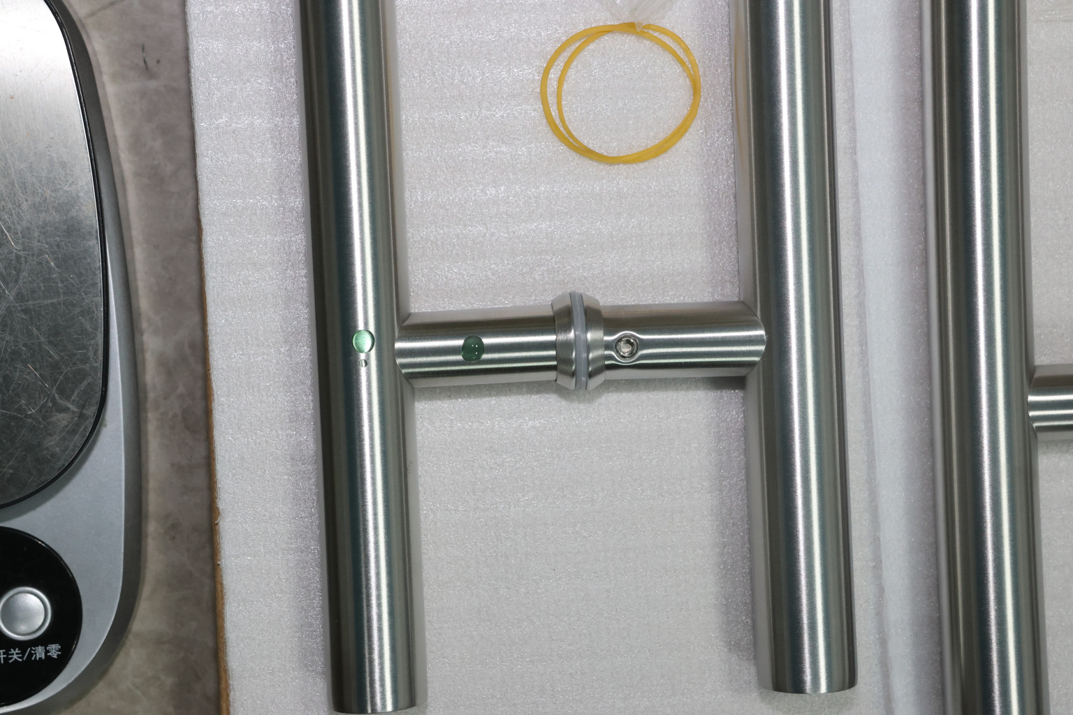 у основания ручки откручиваем с помощью шестигранника винты, делим ручку на две части, в заранее заготовленные отверстия вырезы в стекле 10-12 мм фиксируем первую часть ручки в отверстиях и с обратной стороны ответную часть затягиваем с помощью шестигранника