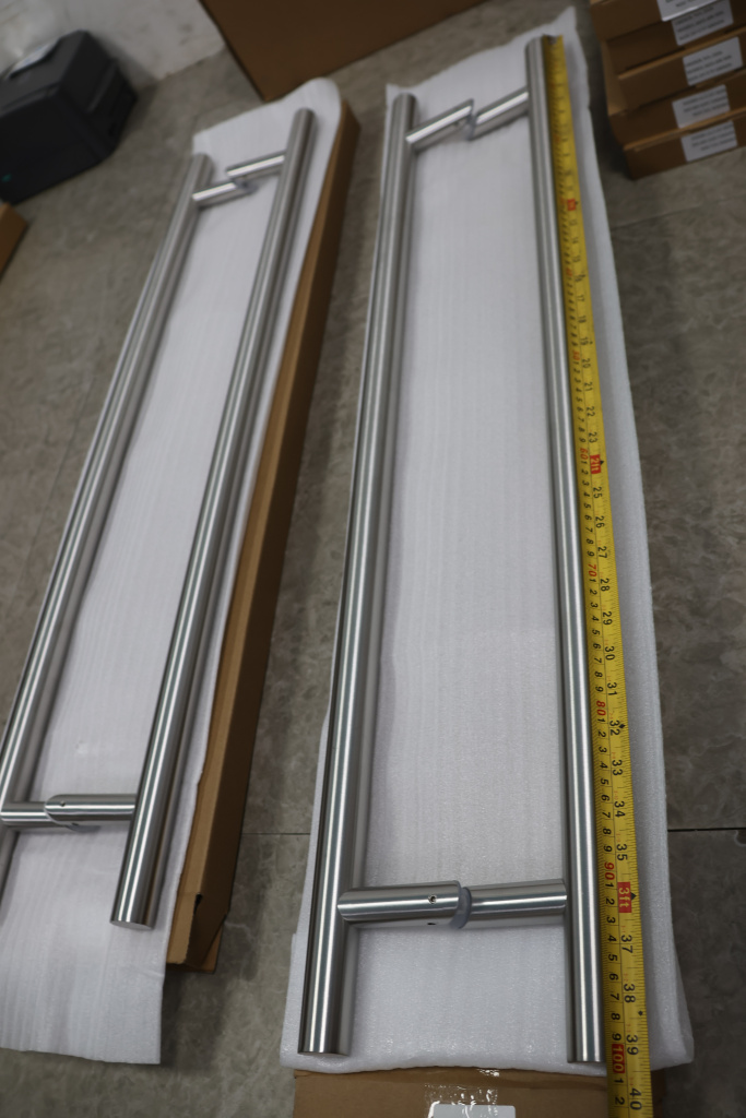 Ручка для стеклянной двери двухсторонняя 32х825х1000 для стекла 10-12 мм, угловая, матовая, марка стали- AISI 304