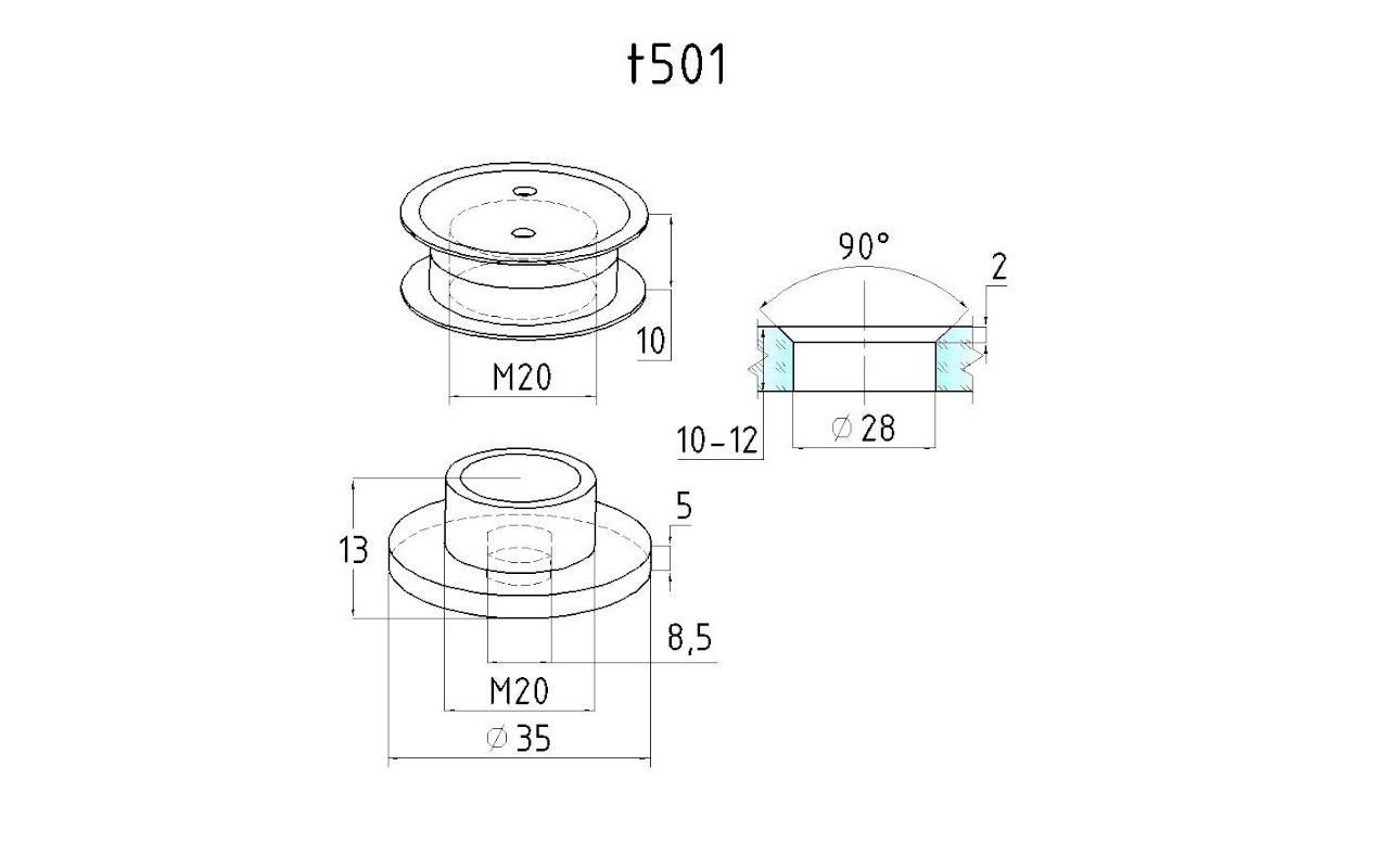 Точечный стеклодержатель 6 мм, нерегулируемый, без зенковки, для стекла 8-10 мм t501A SSS