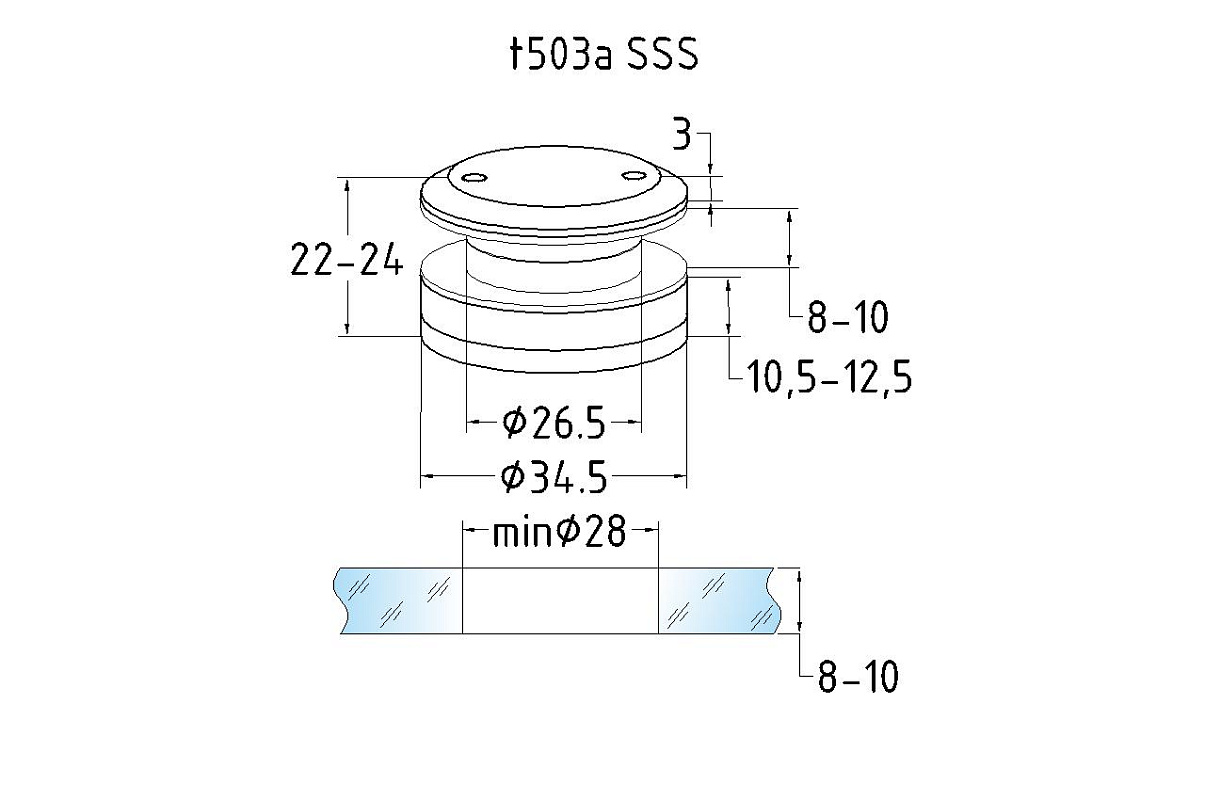 Точечный стеклодержатель 6 мм, нерегулируемый, без зенковки, для стекла 8-10 мм t501A SSS