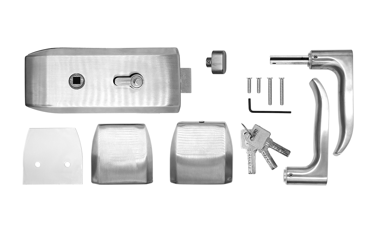 С помощью шестигранников откручиваем ручки замка, вертушку на личинке и с торца замка два винта откручиваем и снимаем крышки. И фиксируем замок в подготовленный вырез в стекле. Далее закручиваем и фиксируем обратно замок и после- крышки и ручки ставим на место.