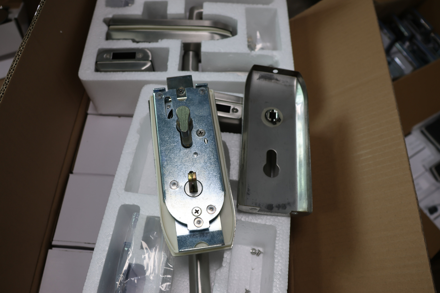 Замок для стеклянной двери с нажимной ручкой без притвора, евроцилиндр односторонний ключ/защелка, в комплекте ответная часть на стекло t155 SSS