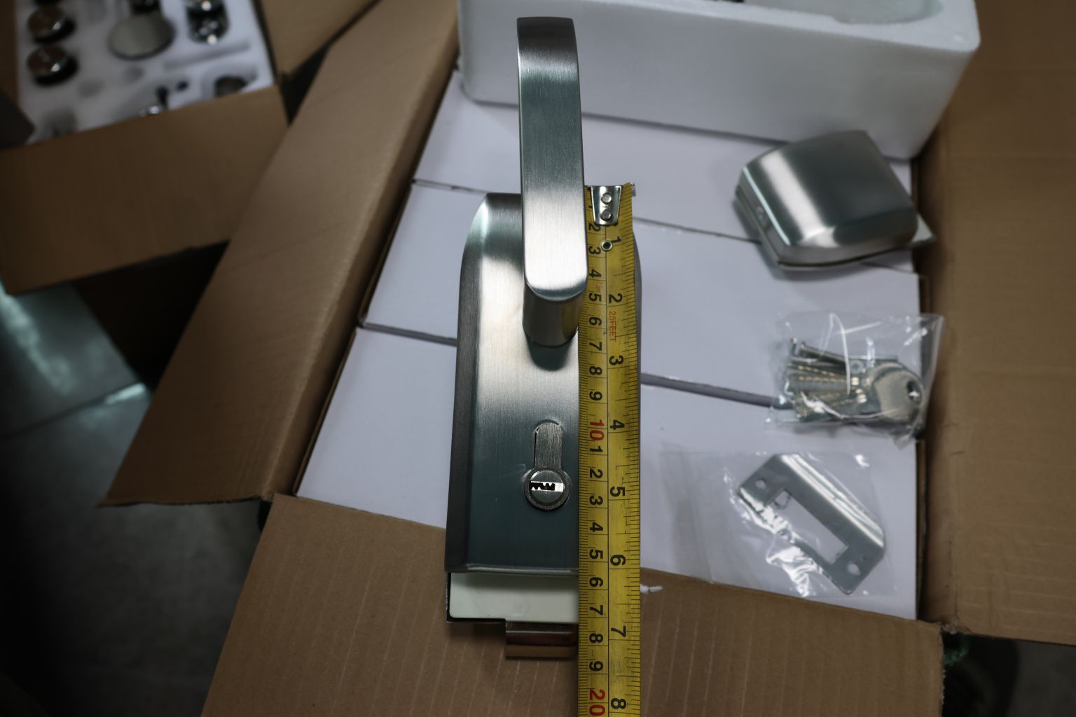 Замок с нажимной ручкой монтируется на стеклянную дверь, толщина стекла 8-12 мм.