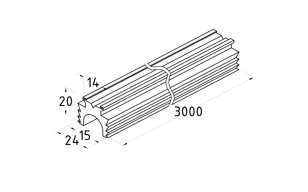 Рассеиватель света для поручня с пазом 24х24 выпуклый (хлыст 3 метра) k777-1