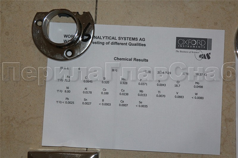 Фланец с тремя отверстиями для трубы диаметром 38.1 мм. Деталь литая, полированная. Марка стали - AISI 304