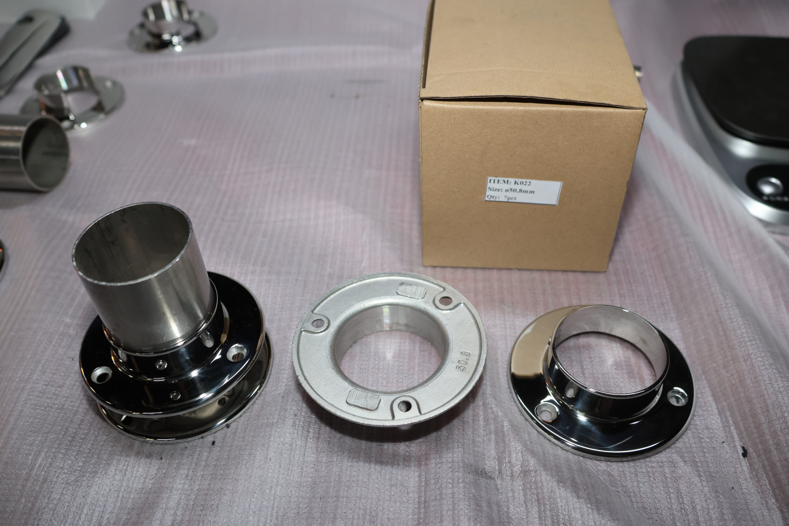 Фланец для трубы Ø50.8 мм, литой, полированный под 3 самореза 4.8 мм (AISI 304) k022