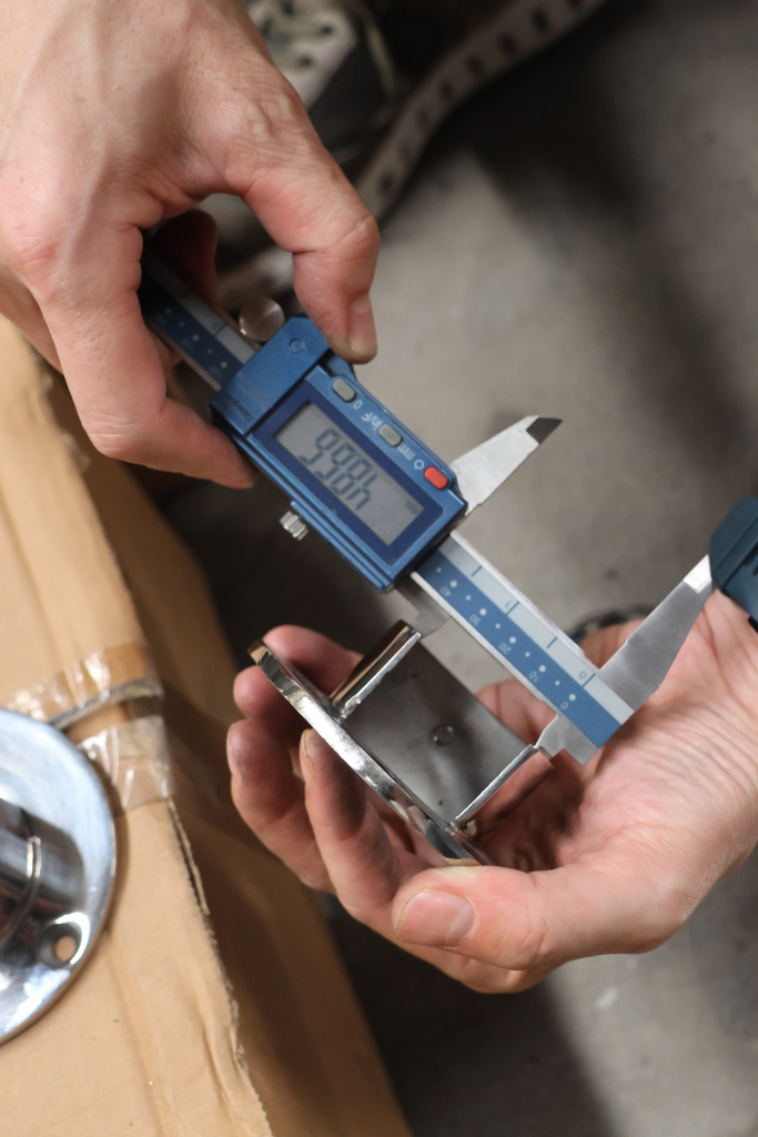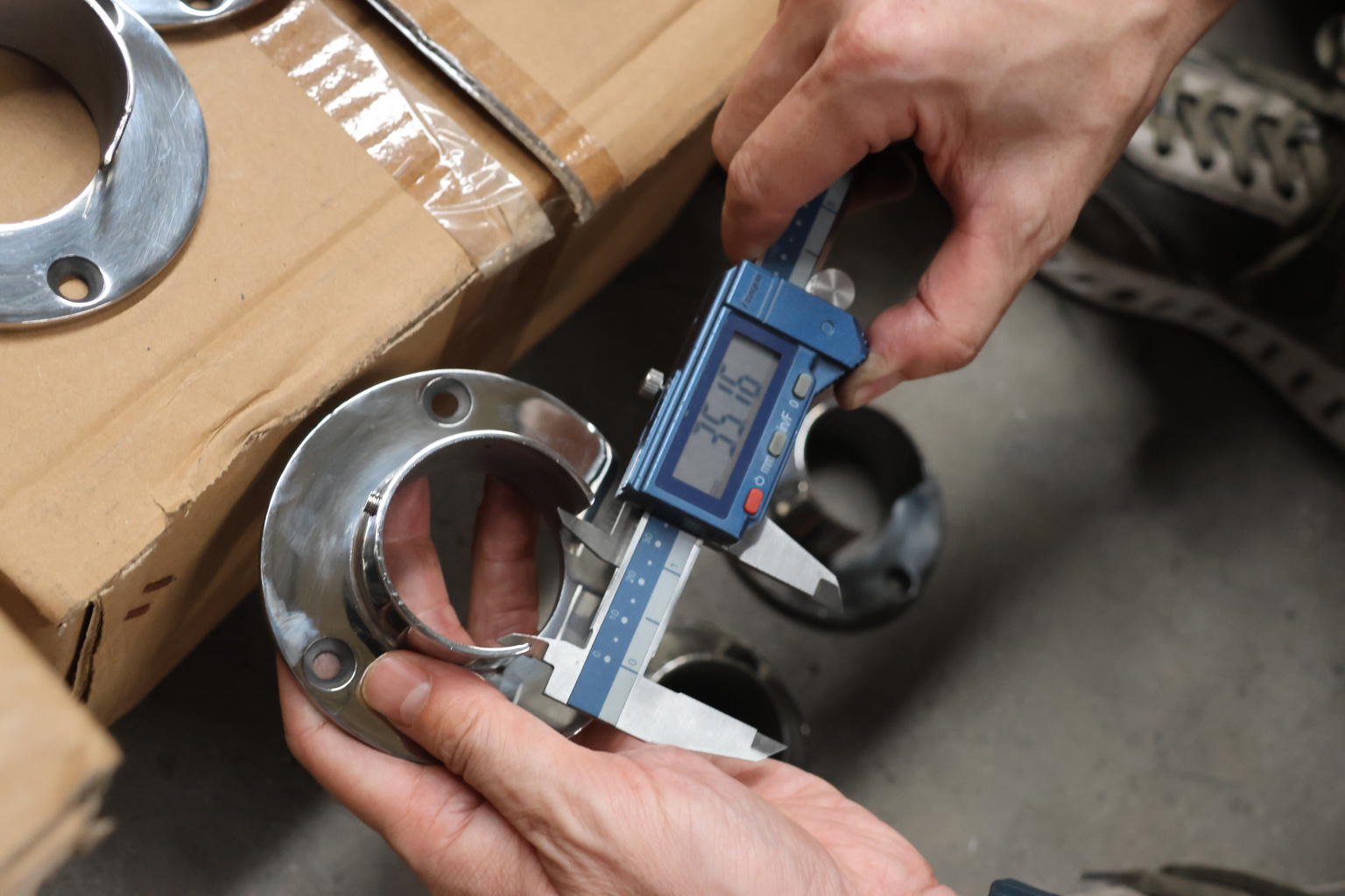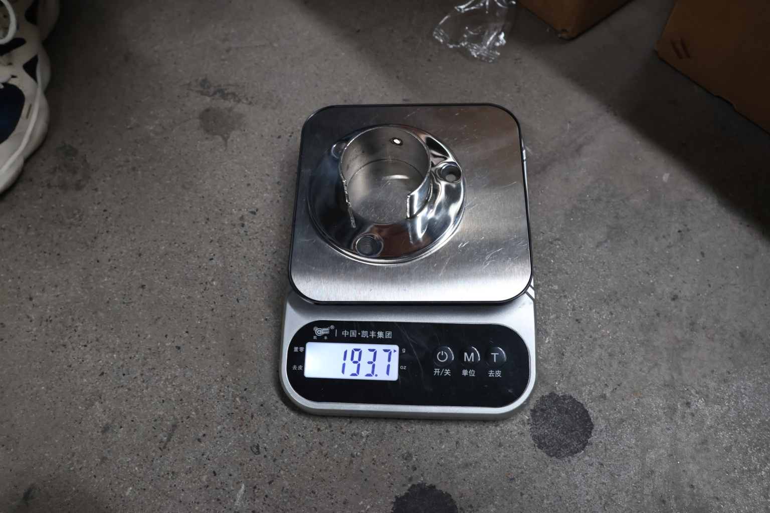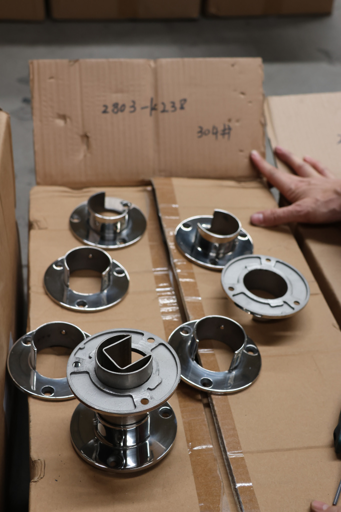 Фланец с тремя отверстиями для трубы с пазом диаметром 48.3 мм. Деталь литая, полированная. Марка стали - AISI 304