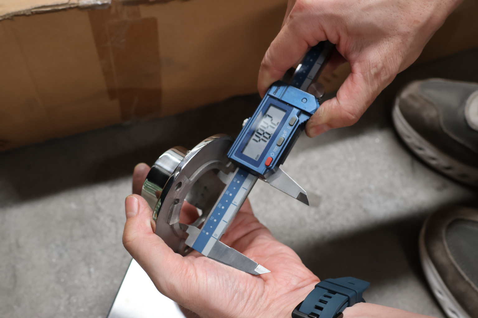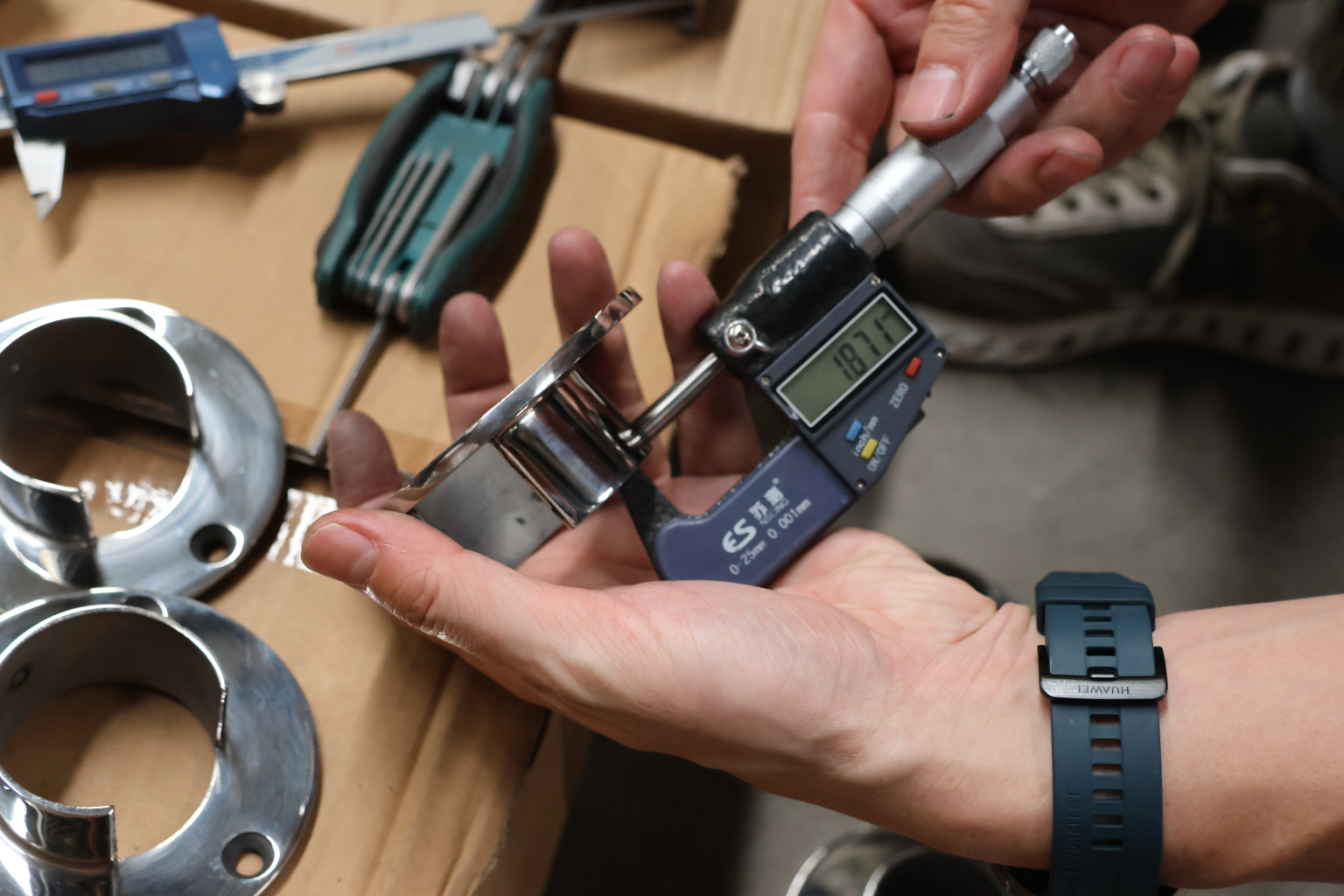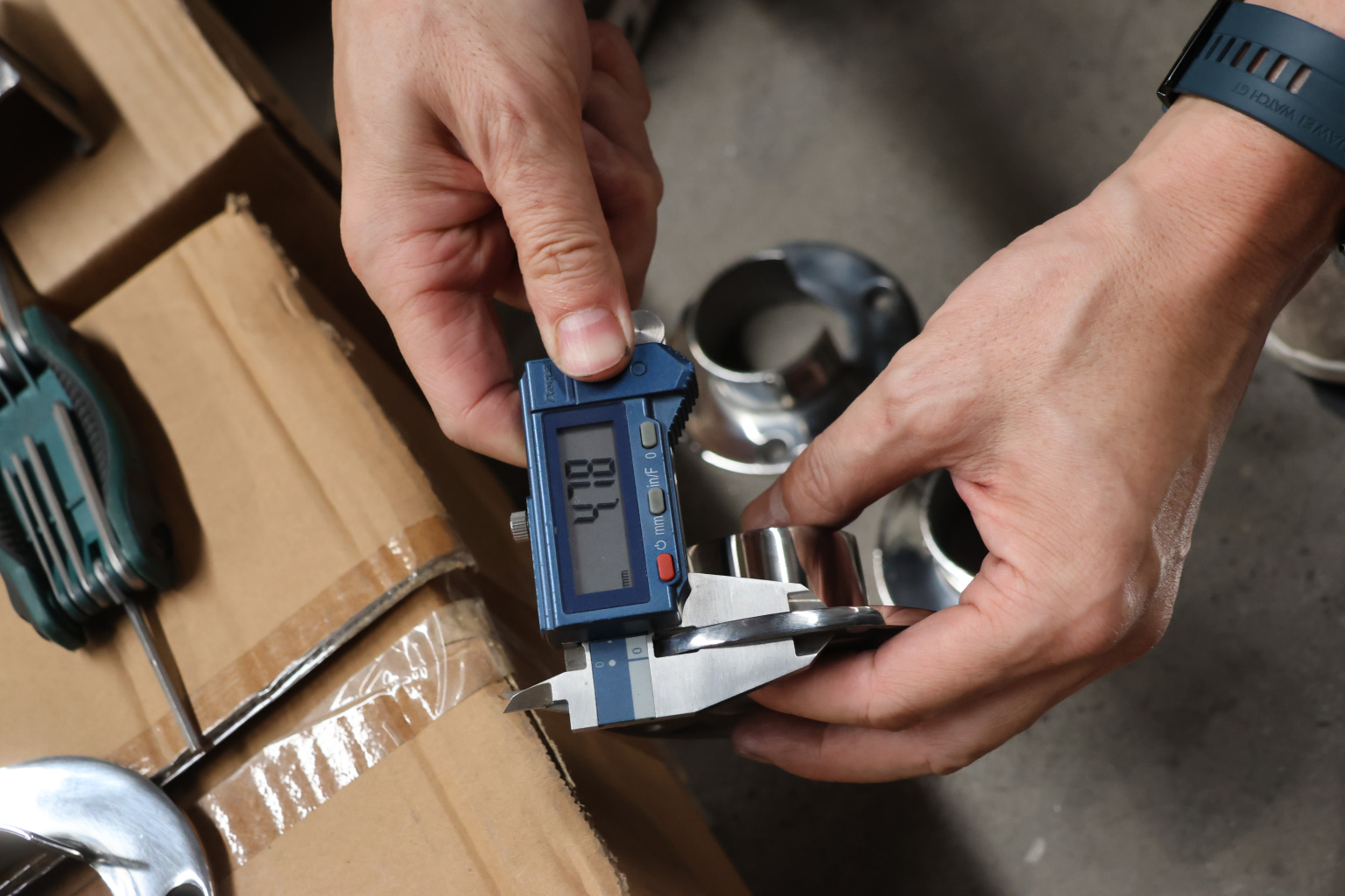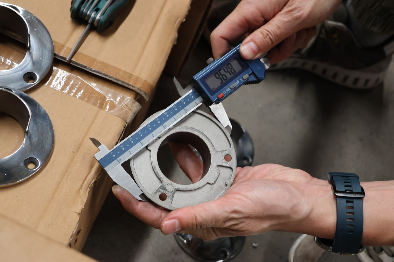 Фланец с тремя отверстиями для трубы с пазом диаметром 48.3 мм. Деталь литая, полированная. Марка стали - AISI 304