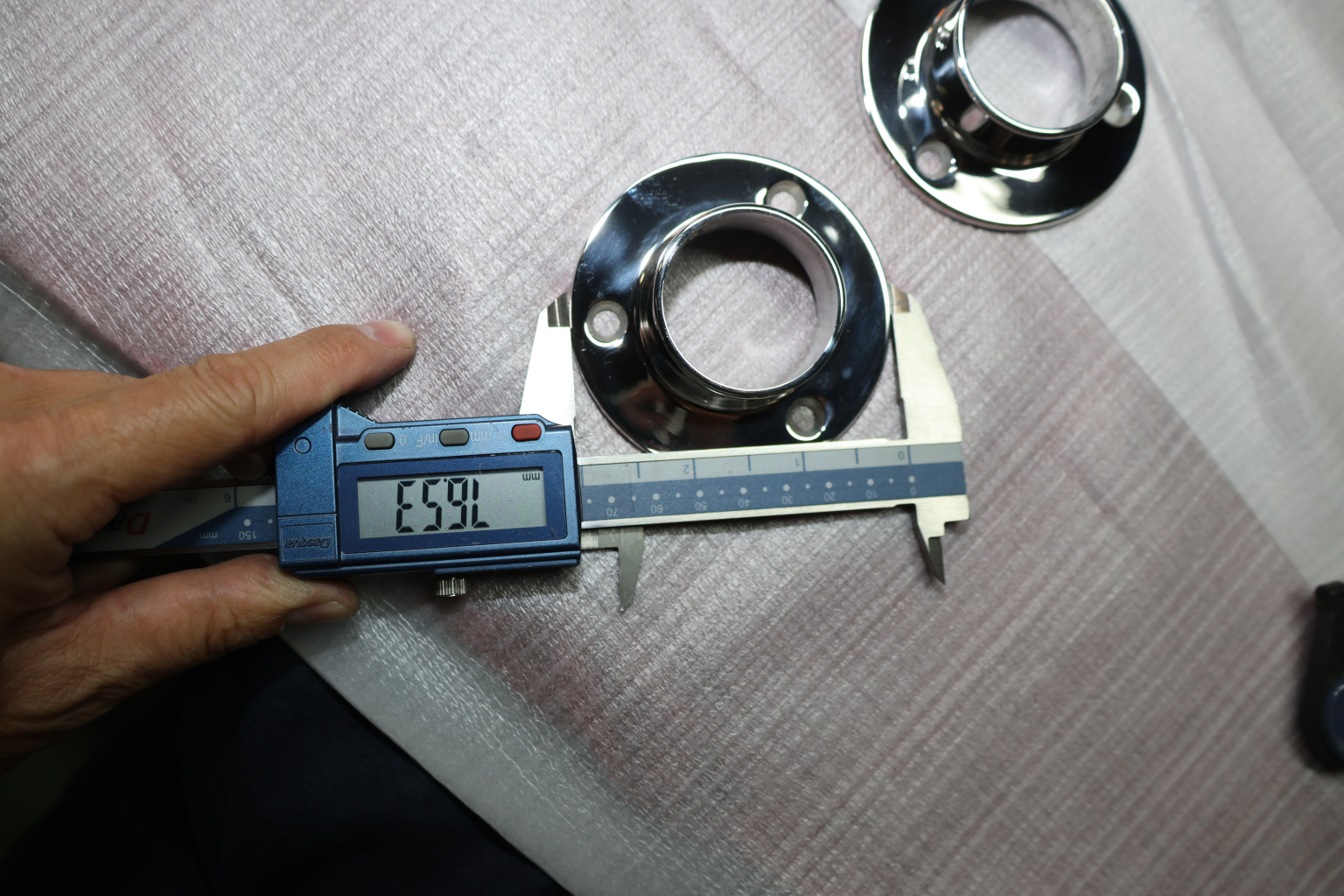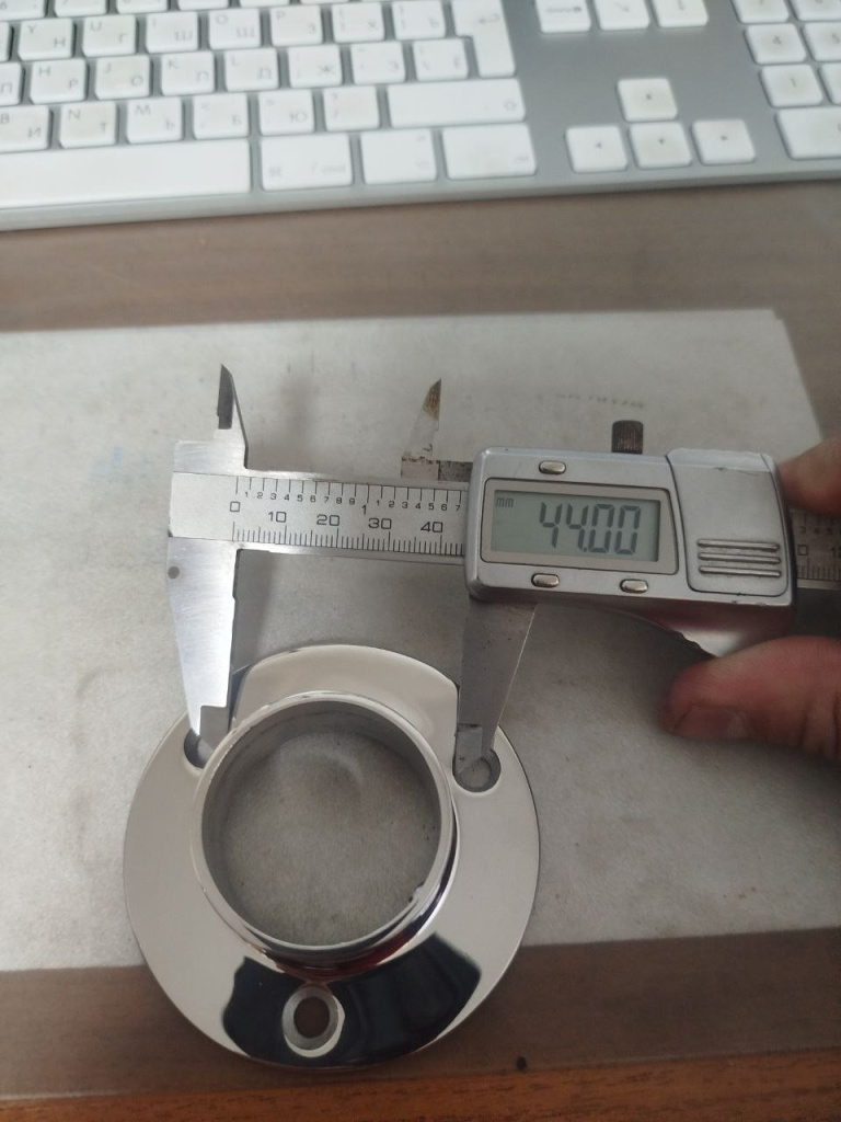 Фланец с тремя отверстиями для трубы диаметром 38.1 мм. Деталь литая, полированная. Марка стали - AISI 304