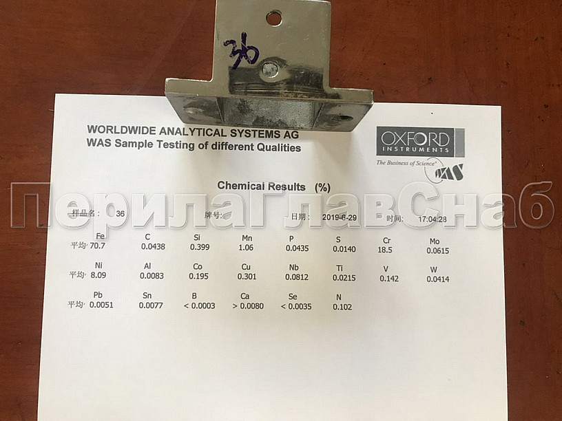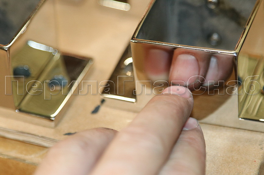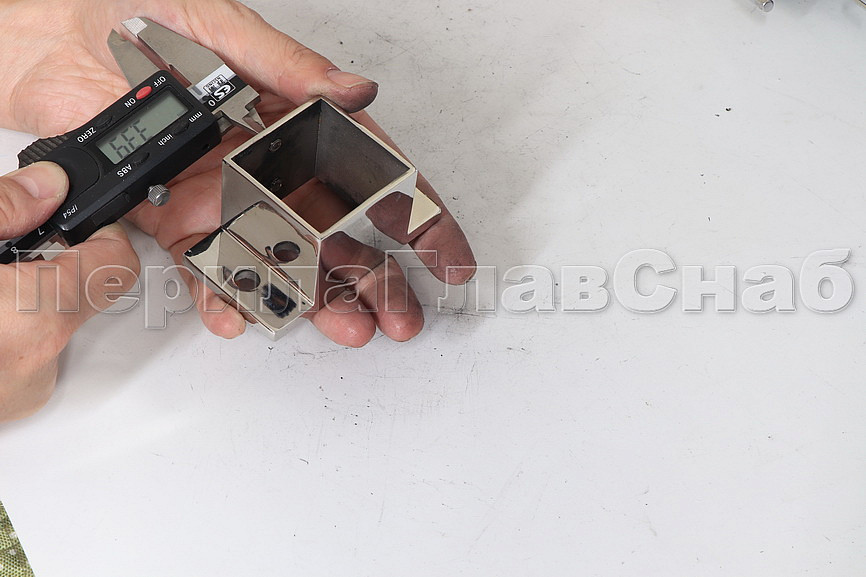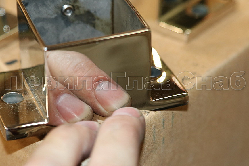 Фланец для трубы 40х40. Отверстия Ø8 мм. Деталь укороченная, полированная, литая. Марка стали - AISI 304