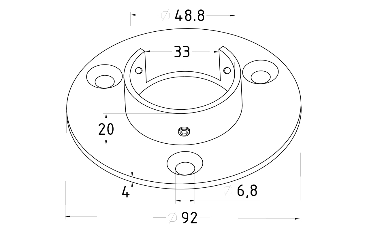 Фланец для трубы Ø48.3 мм, под 3 самореза 6.8 мм, литой, полированный, (AISI 304) k238-3