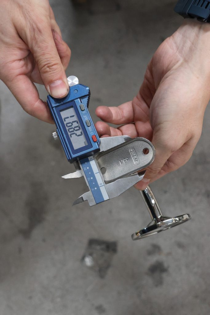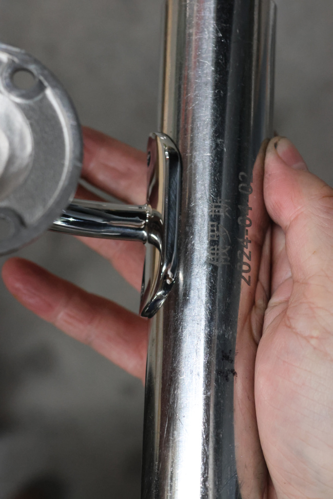 Пристенок под диаметр 38.1 мм. Три отверстия под саморез с потайной головкой 5.5 мм. Деталь литая, полированная. Марка стали - AISI 304.