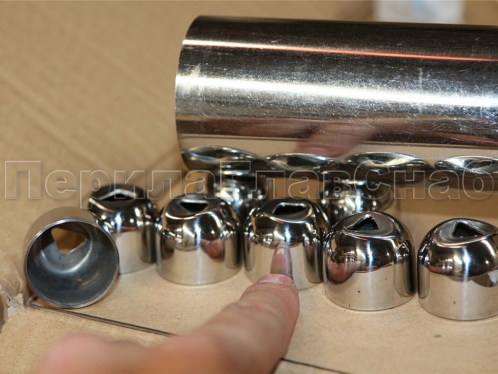Наконечник штампованный (СПС) прямой 90° на трубу Ø25.4 мм, для поручня диаметром 38.1- 50.8 мм, полированный, нержавеющий. марка стали - AISI 304