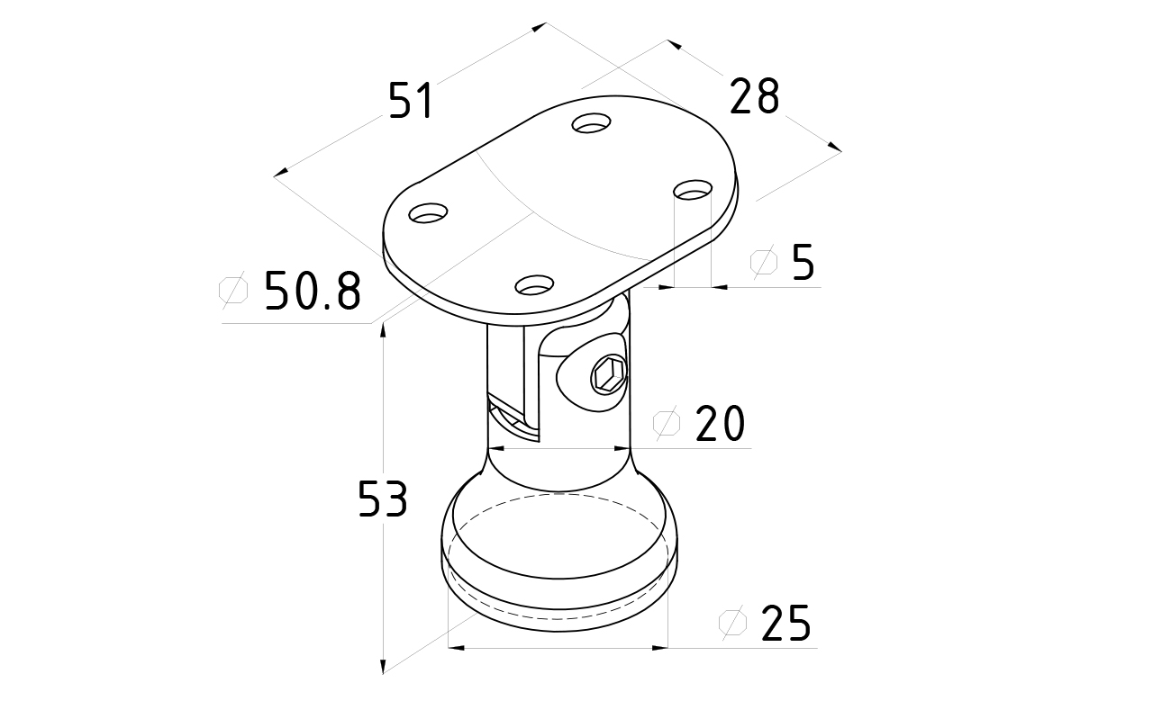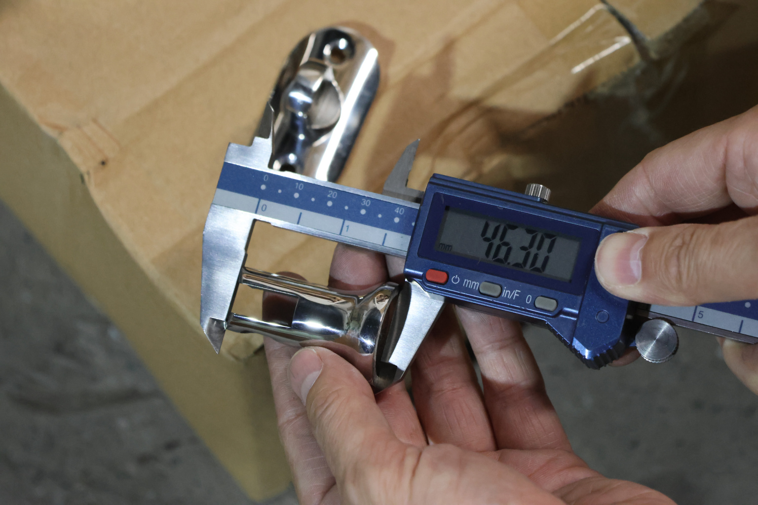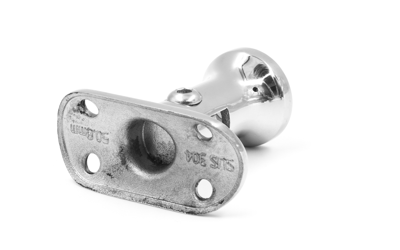 Наконечник стойки "колокольчик" на плоскость, с ложе под диаметр 50.8 мм. Деталь литая, полированная. марка стали - AISI 304