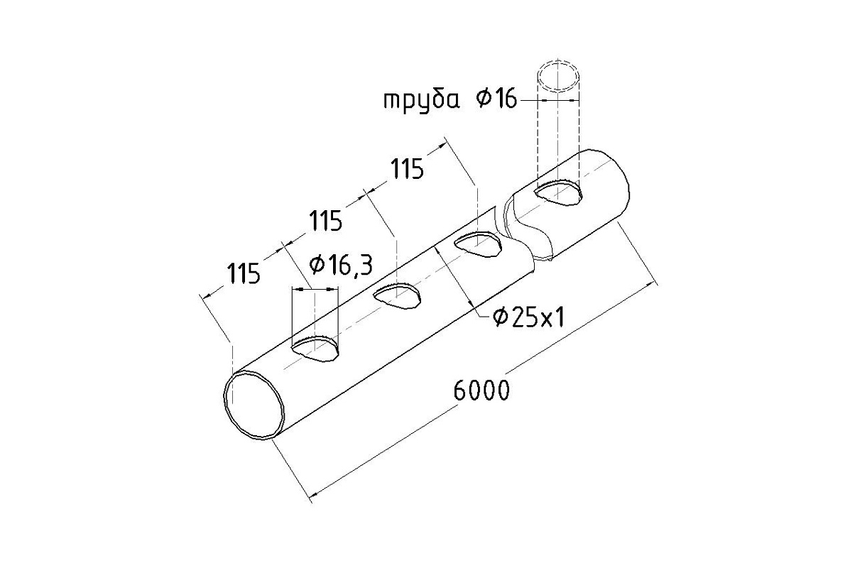 Труба AISI 201 25х1х6000, с перфорацией под  Ø16, 30°, GRIT 600 831-5 купить в Москве