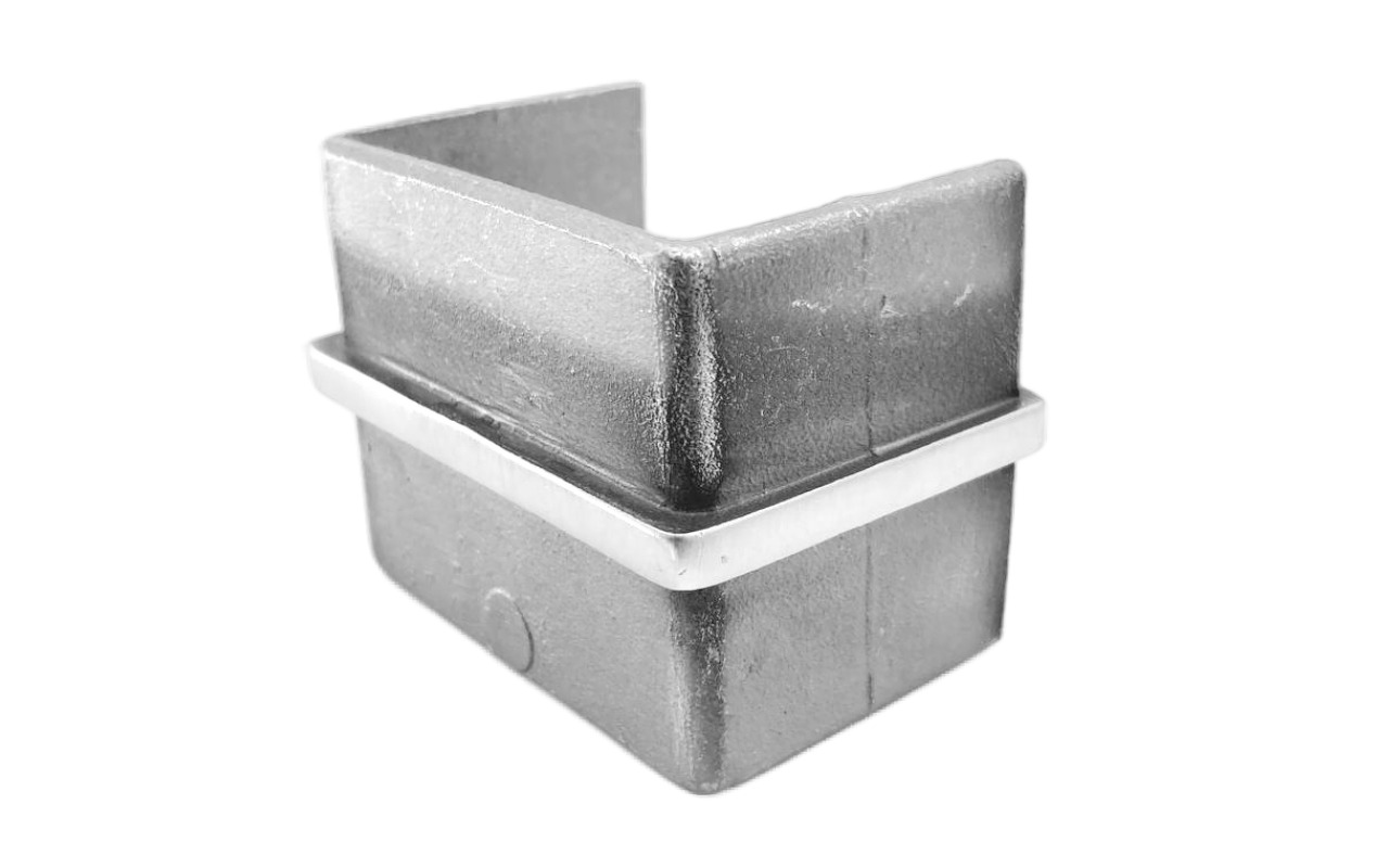 Применяется для соединения в горизонтальной плоскости трубы 60х40 нержавеющего поручня с пазом с несущим стеклом или подсветкой.