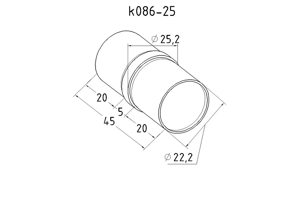 Соединитель трубы Ø25.1х1.45мм, полированный, AISI 304, с насечками k086-25