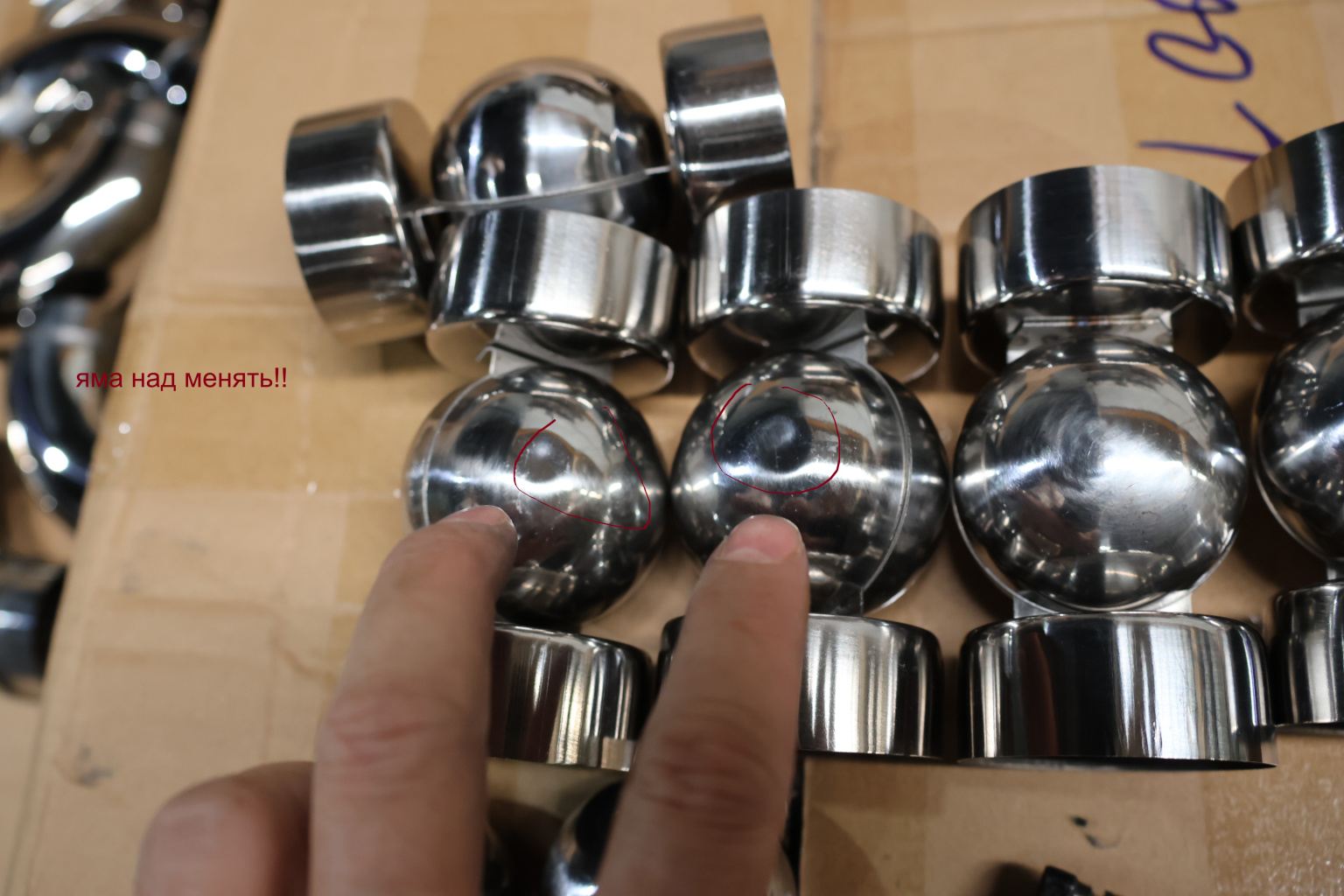 Поворот деревянного или пластикового поручня диметром 50.8х0.4 мм. Деталь полированная, штампованная. Марка стали - AISI 201