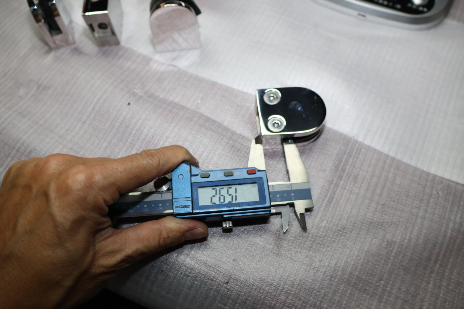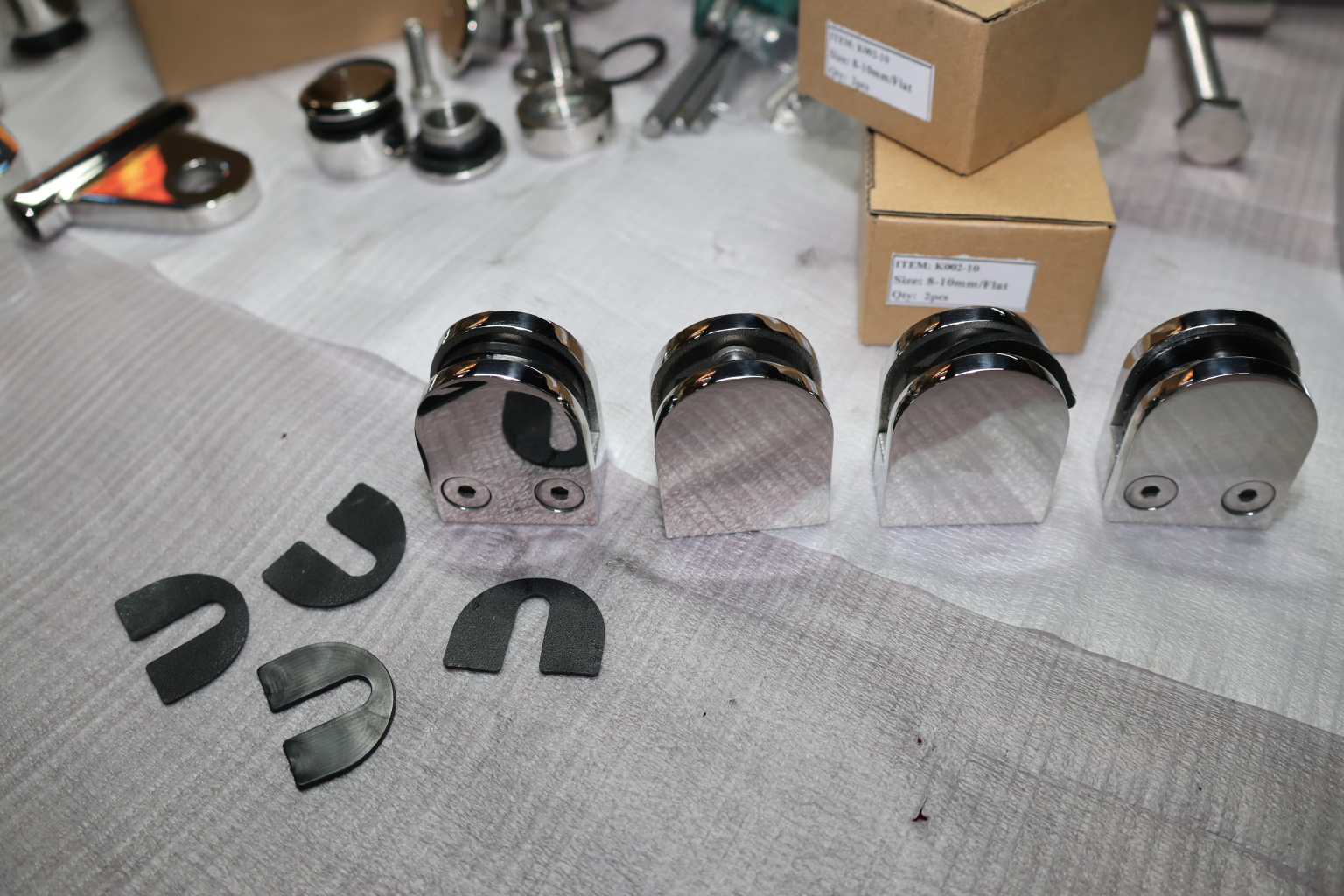 k002-10 стеклодержатель литой под стекло 8-10 мм, 4+4 мм. На плоскость 40х22х50, полированный. Марка стали -  AISI 304