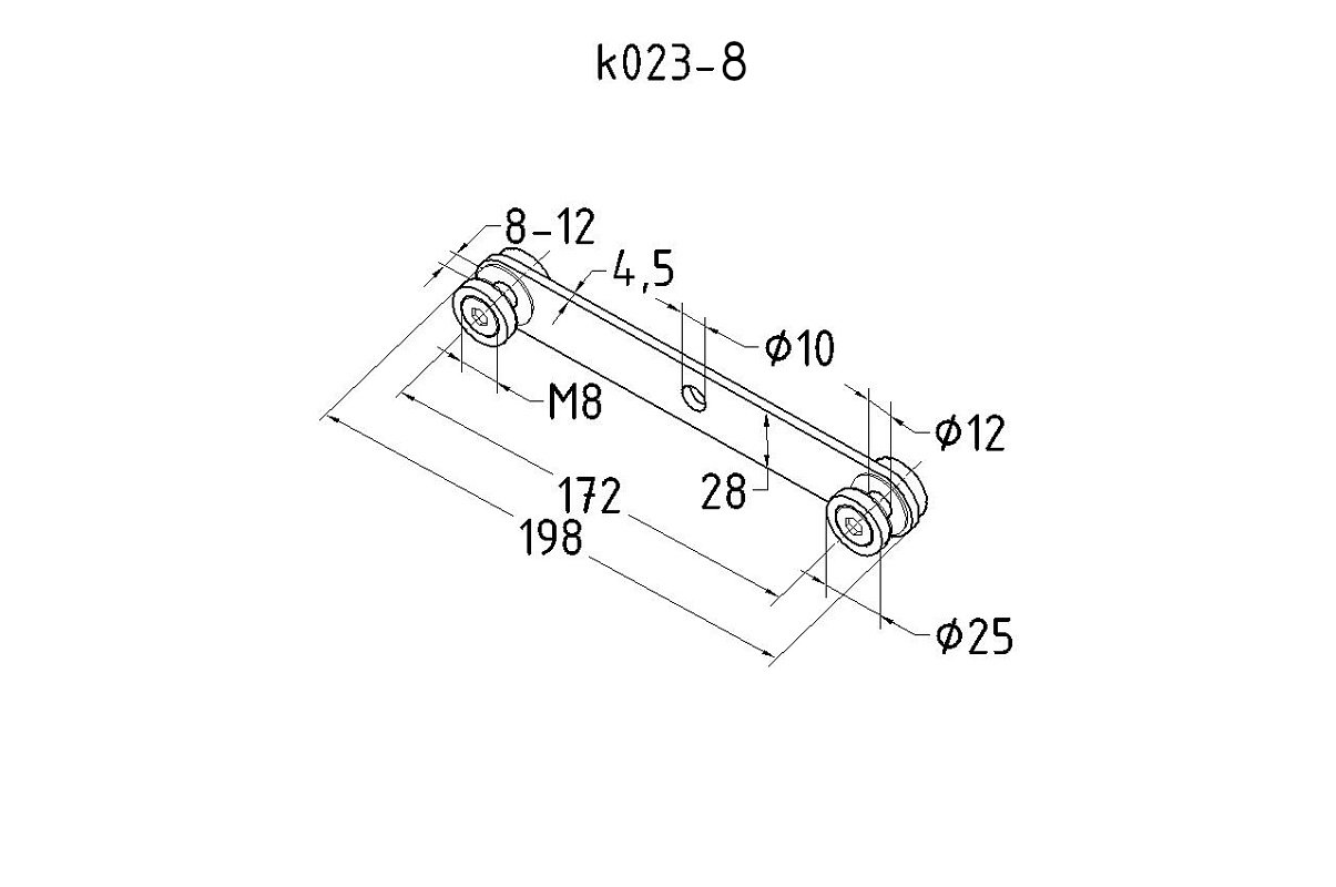Стеклодержатель пластинчатый 3хМ8, по центрам 170х5 мм, полированный, шайбы 5 мм штамп., под стекло 6-12 мм, AISI 316 k023-8
