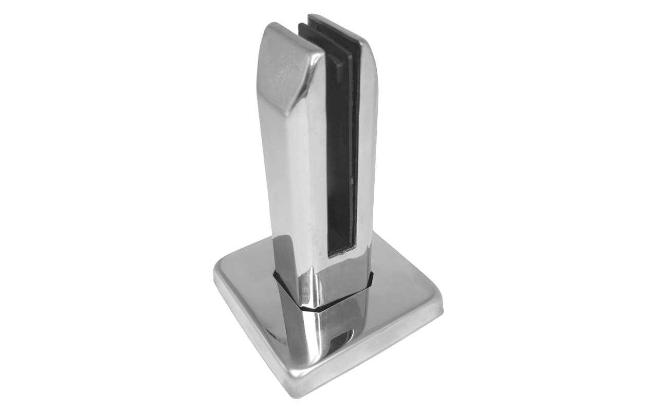 Стеклодержатель штампованный  под стекло 8 мм (4+4 мм), квадратный, под стойку Ø38.1 мм (40х24х48), полированный (AISI 304) k351 купить в Москве