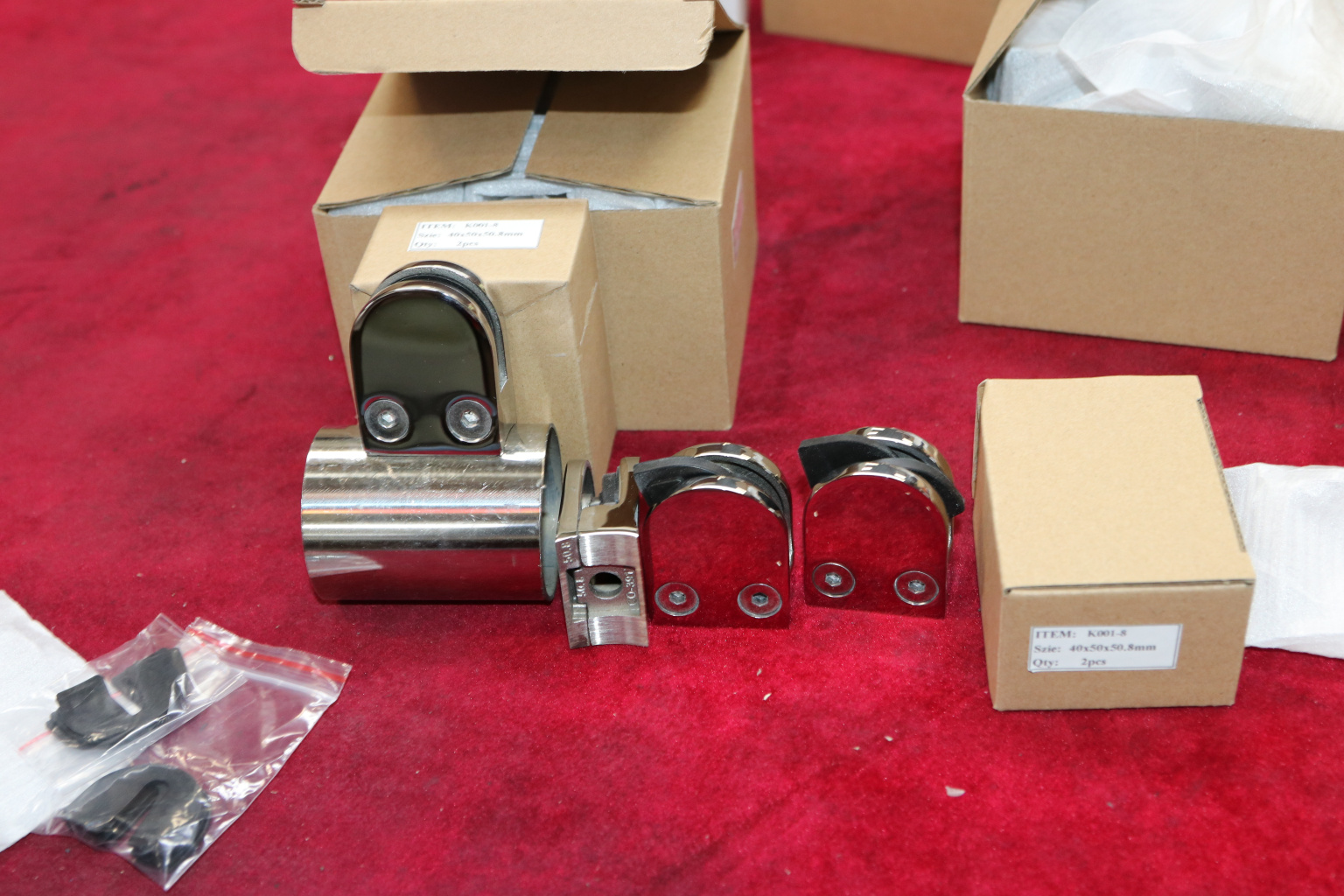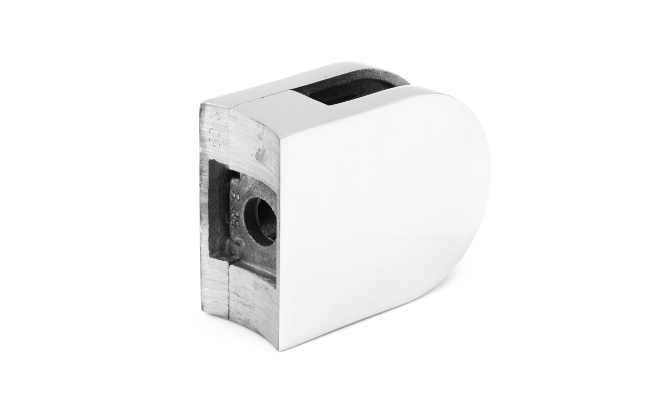 Стеклодержатель литой под стекло 8 мм (4+4 мм), под стойку Ø38.1 мм, (40х22х49), полированный AISI 316 k001-5 купить в Москве