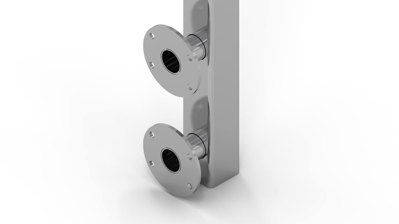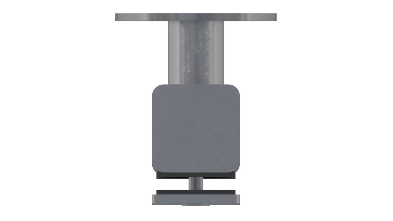 Стойка крепится к торцу лестницы/перекрытия/крыши через отверстия во фланцах, крепеж выбирается в зависимости от поверхности, на которую необходимо смонтировать деталь. Затем устанавливается стекло, через отверстия диаметром 16-18мм, и фиксируется прижимной пластиной.