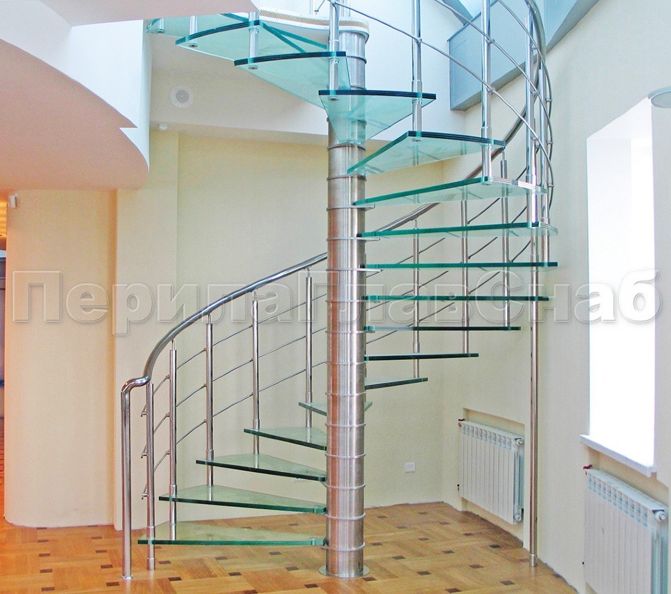 Винтовая металлическая лестница отличается следующими конструктивными особенностями: