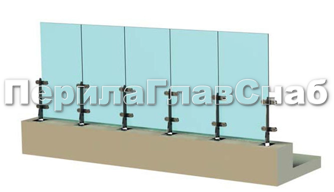 Данный тип ограждений выдерживает большие нагрузки, за счёт увеличенной толщины стекла: триплекс 8 мм + 8 мм закаленный или 15 мм.