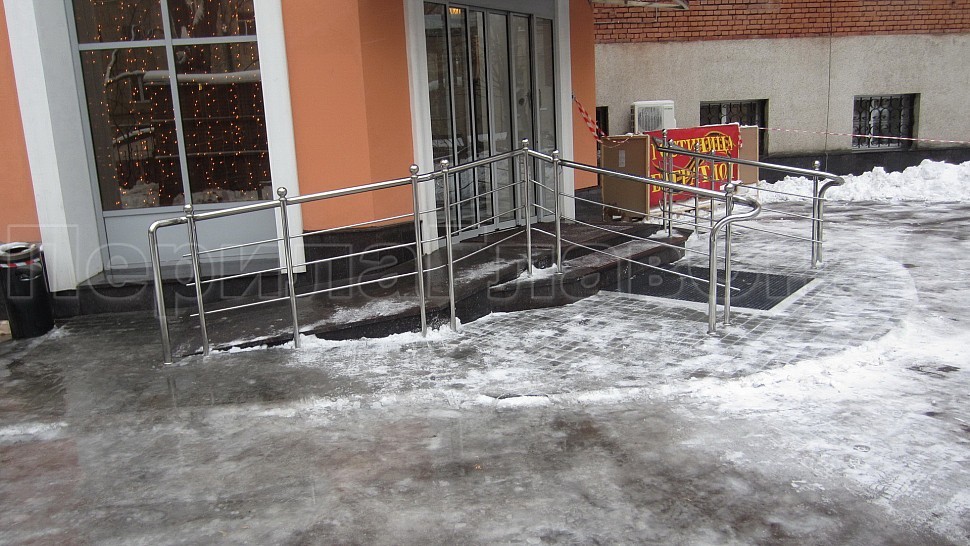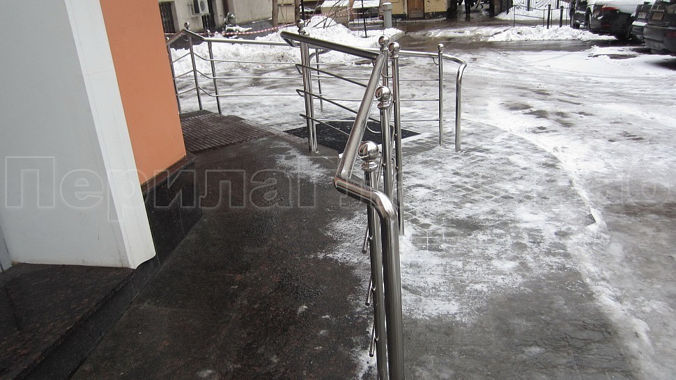 Компанией “ПерилаГлавСнаб” был принят заказ на изготовление и монтаж ограждений для входной группы отеля “Багратион”, состоящей из пандуса и лестницы.