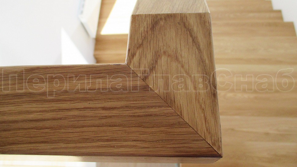 Поручень выполнен в тех же тонах, что и сама лестница, что придает общей конструкции гармоничный вид, а золотой цвет дуба создает визуальную легкость и отлично вписывается в светлый интерьер дома.