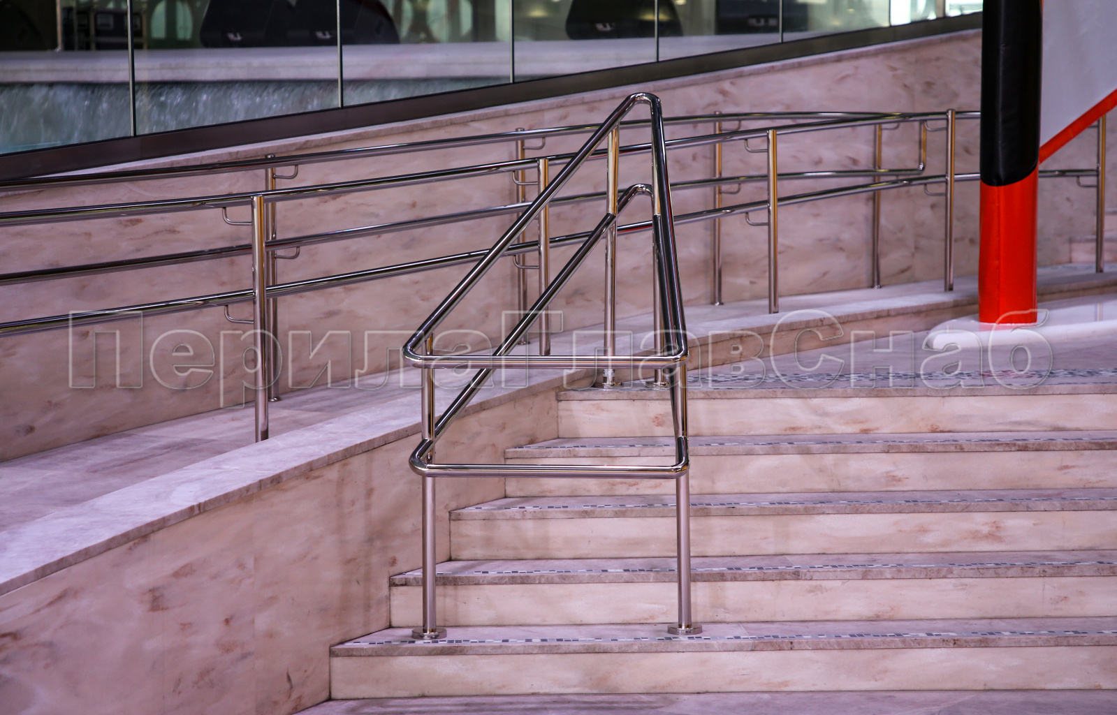 Для придания плавности линий и отсутствия острых углов поручня, были отдельно изготовлены отводы с разными радиусами, что сказалось на сложности изготовления и монтажа поручней. Все швы поручня были обварены по кругу, тщательно зачищены и заполированы.