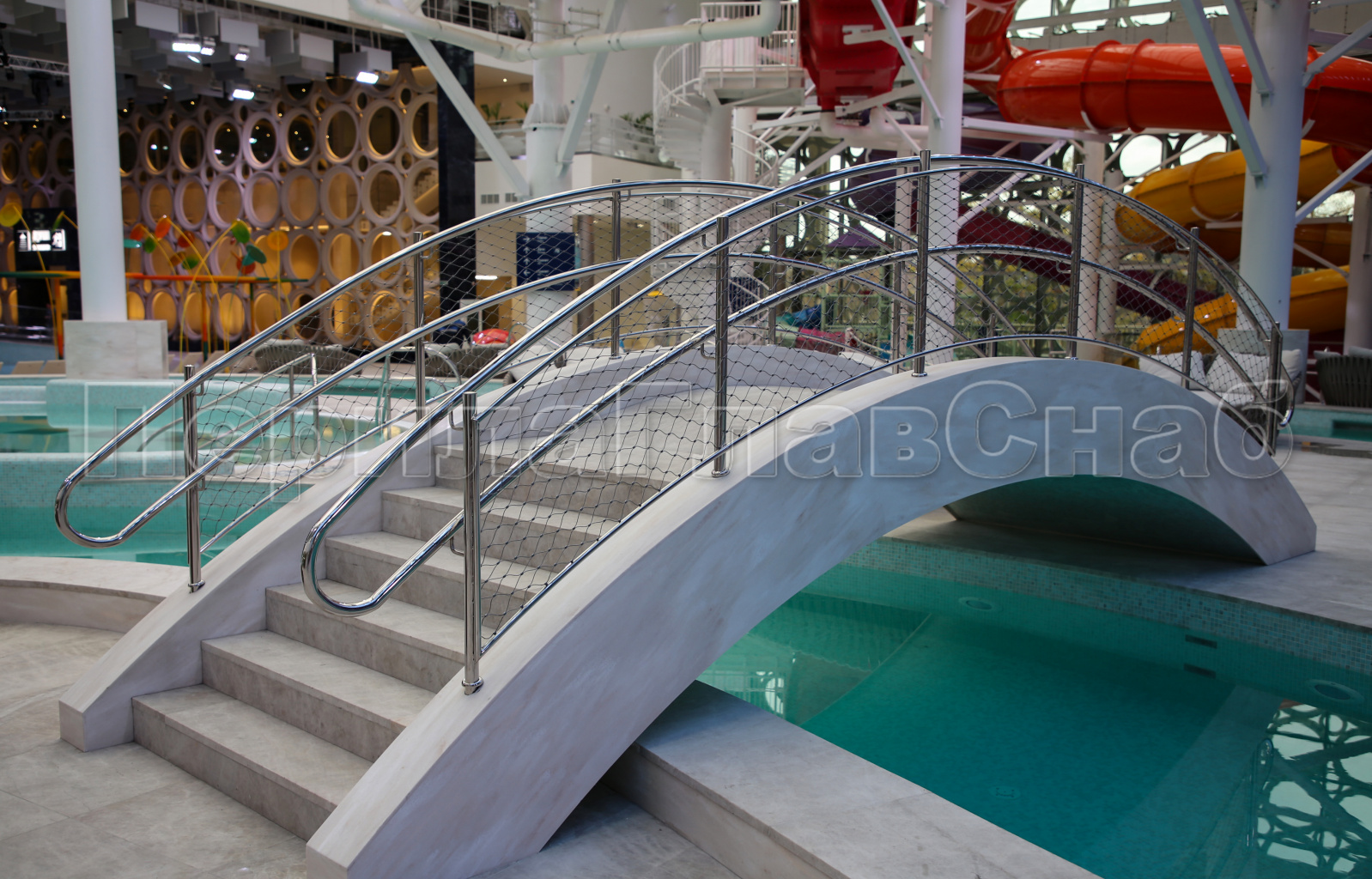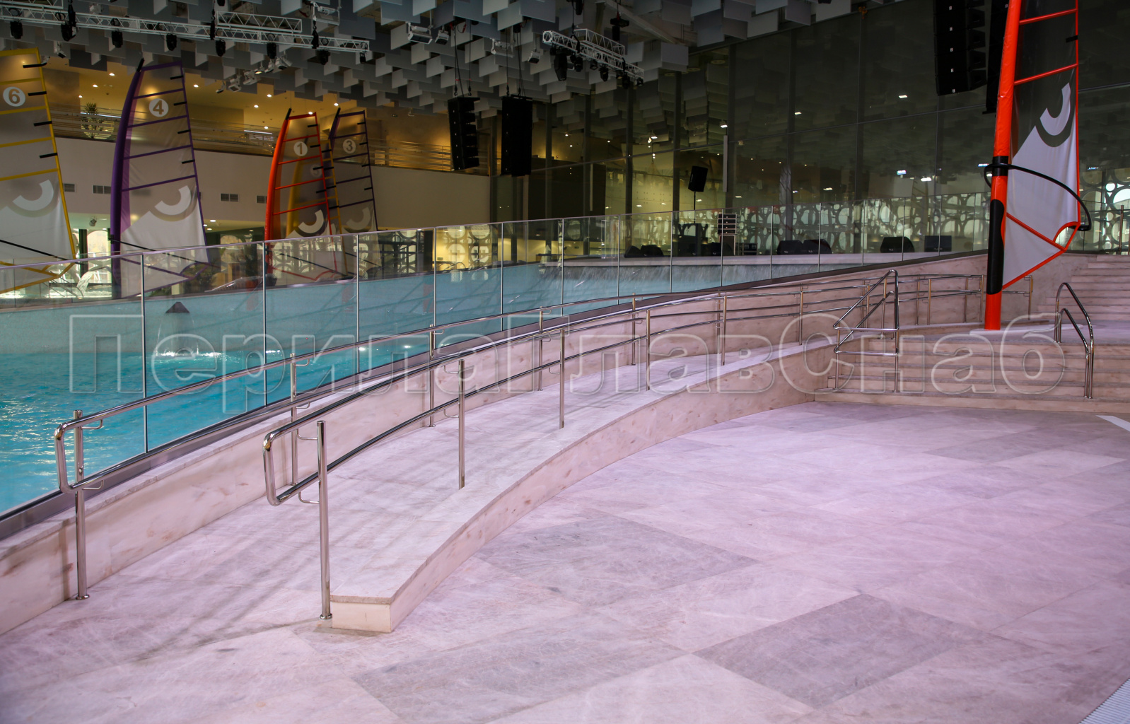 2) Ограждения и поручни должны быть безопасными и антивандальными в связи с тем, что на данном объекте ожидается большое количество посетителей разных возрастов, вместимость Аквакомплекса 10 000 человек.