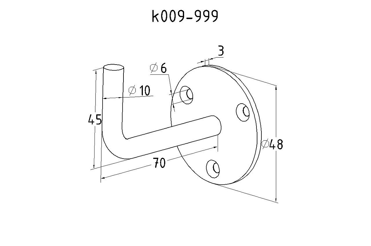 Устанавливается в стену на три самореза (анкера) Ø3 мм. Сам поручень крепится при помощи сварки.