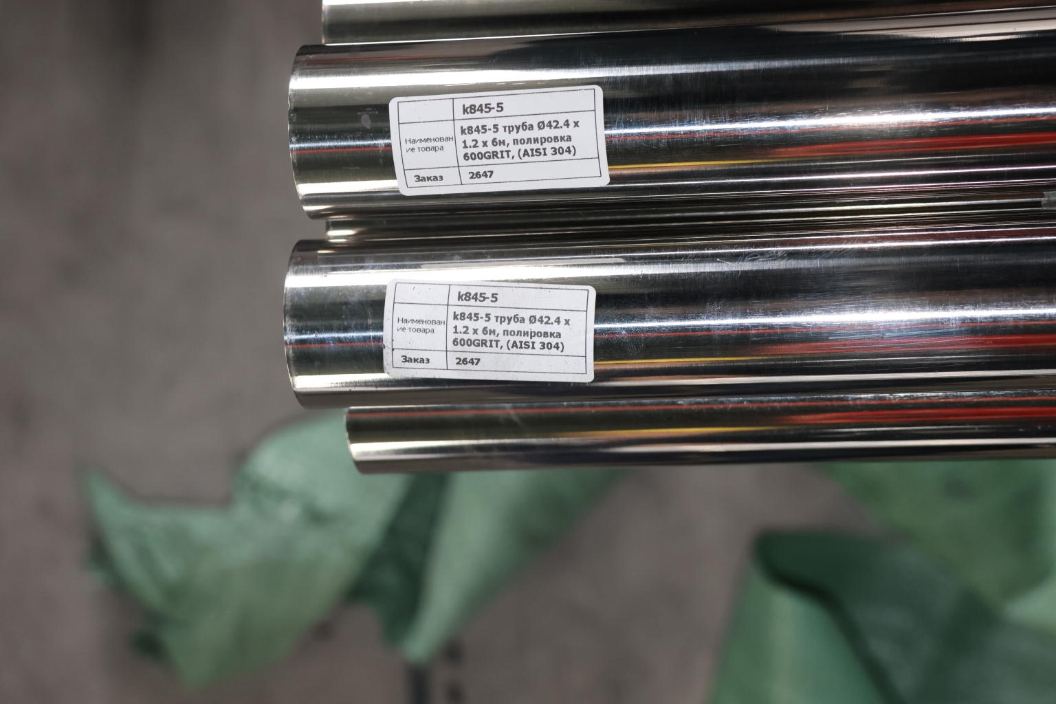 Труба Ø42.4 х 1.2 x 6м, полировка 600GRIT, AISI 304 k845-5